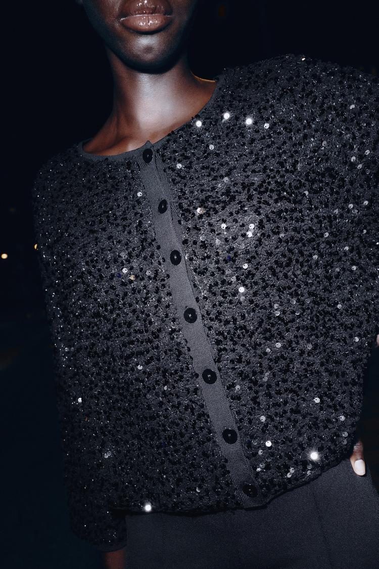 ZARA КАРДИГАН С ПАЙЕТКАМИ, ЧЕРНЫЙ