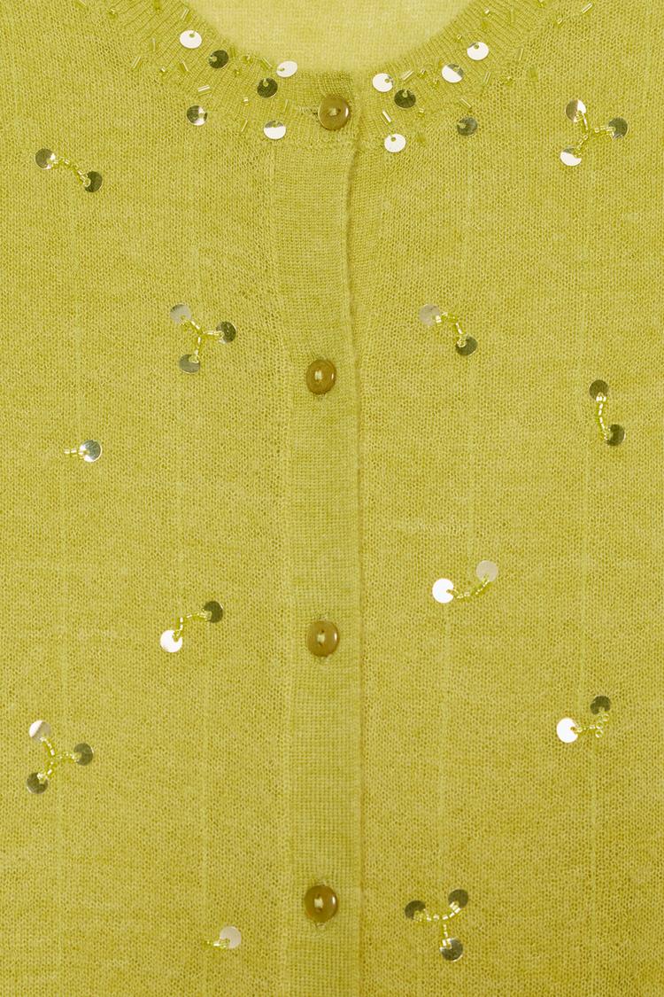 ZARA КАРДИГАН С ПАЙЕТКАМИ, ЯБЛОЧНО-ЗЕЛЕНЫЙ
