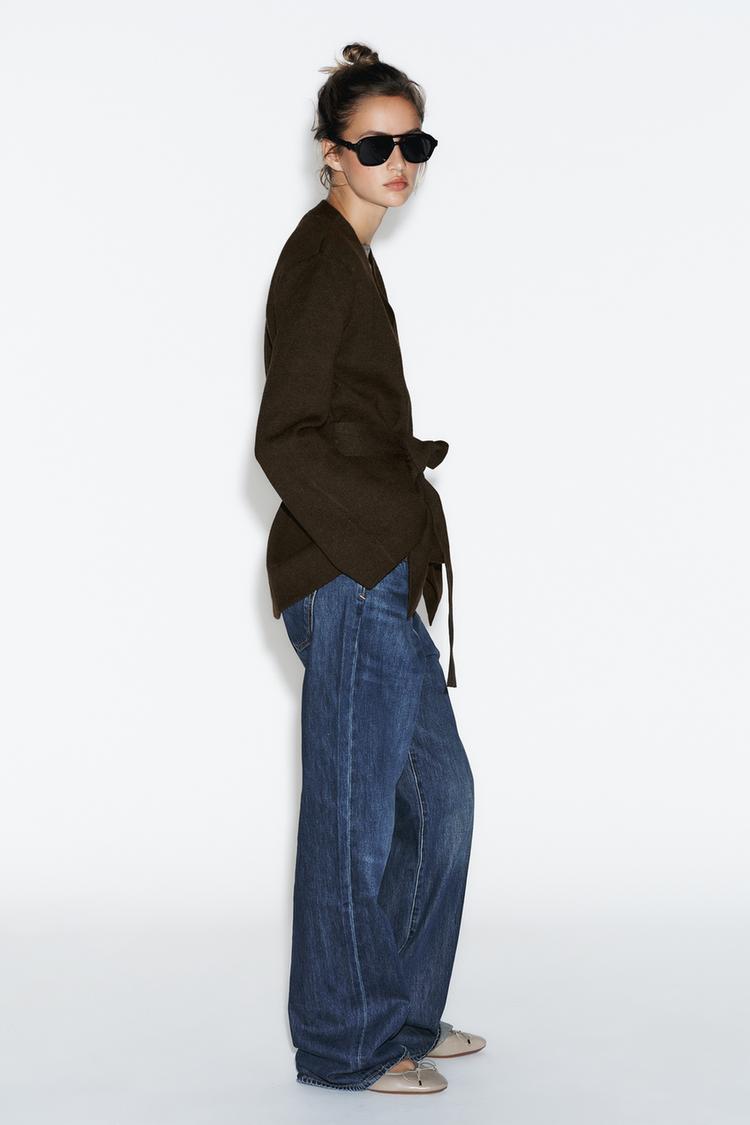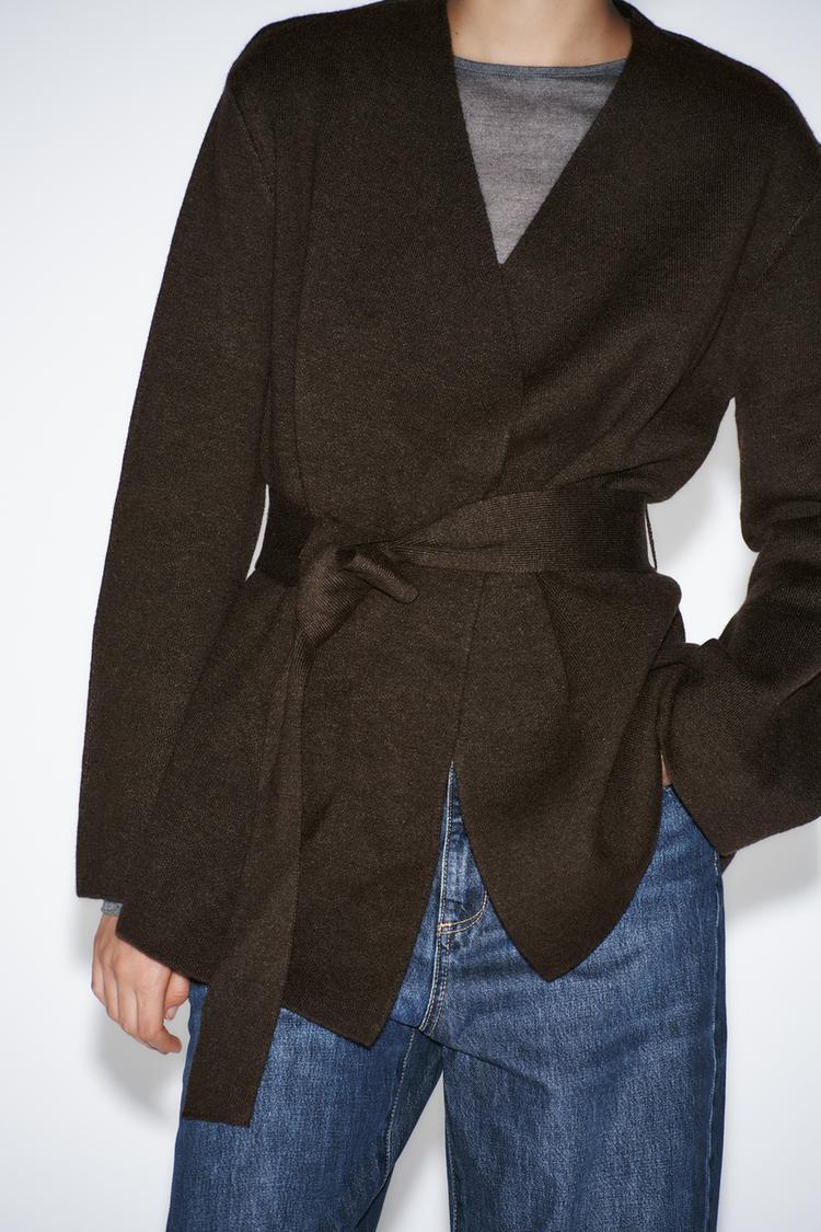 ZARA КАРДИГАН С ПОЯСОМ, КОРИЧНЕВЫЙ