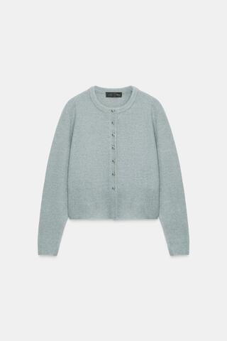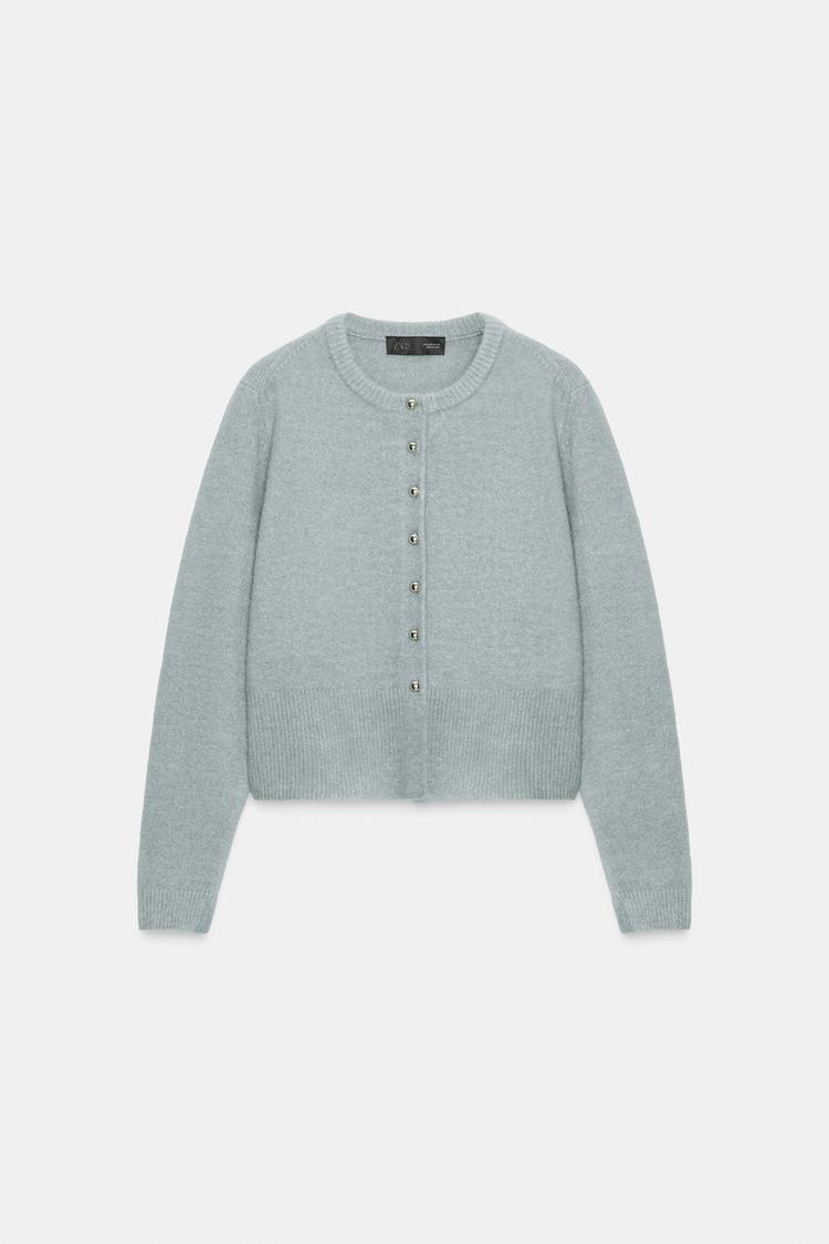 ZARА КАРДИГАН С ПУГОВИЦАМИ-ШАРИКАМИ, СЕРЫЙ/СИНИЙ