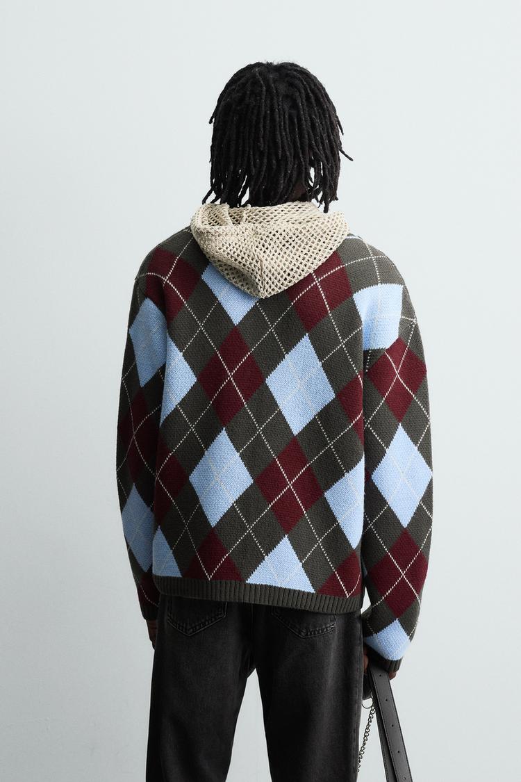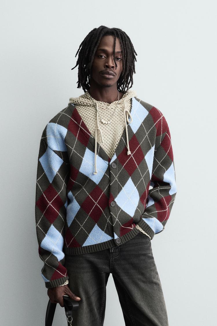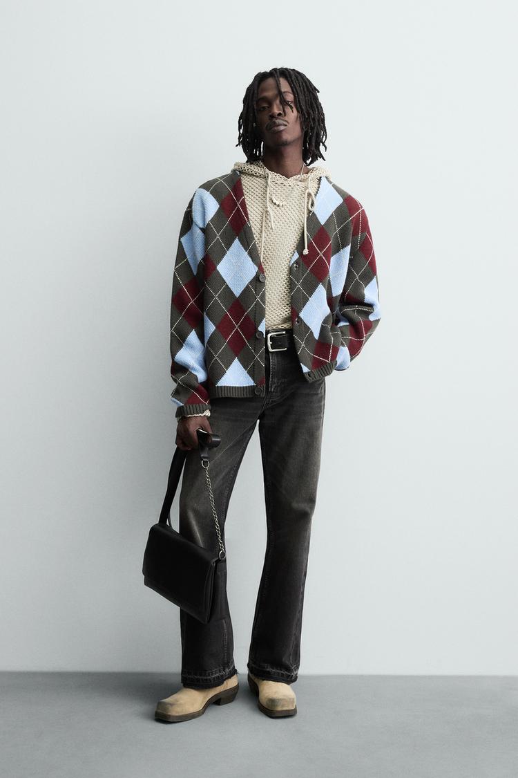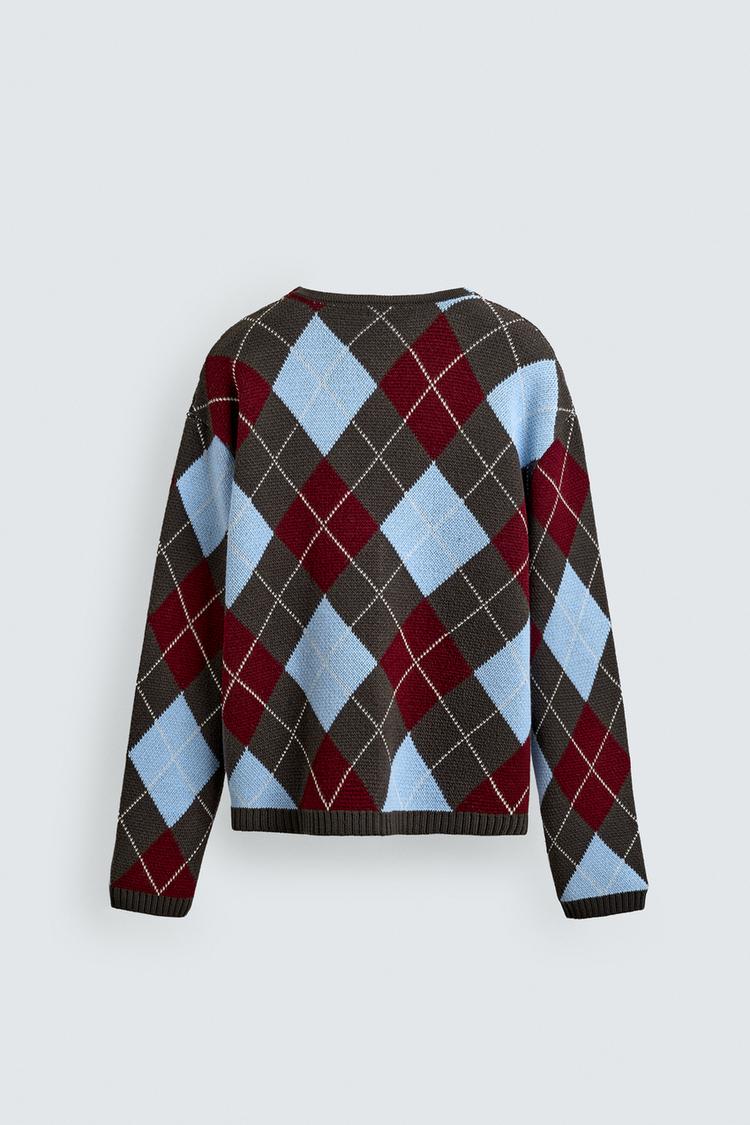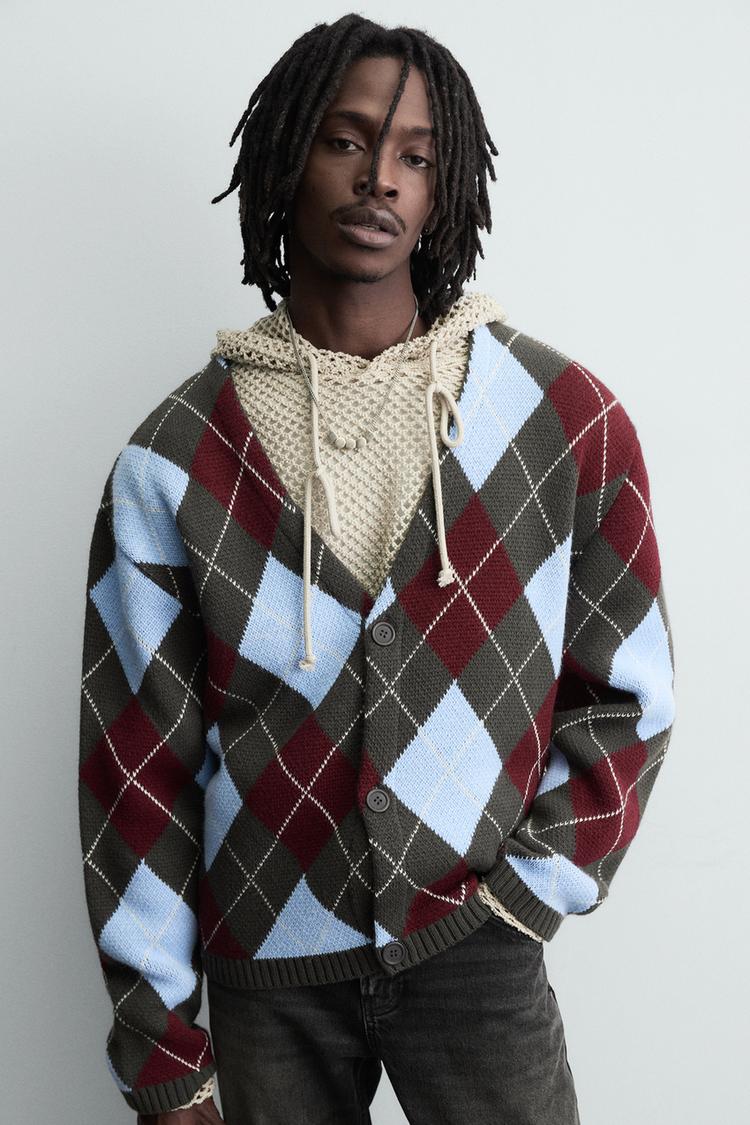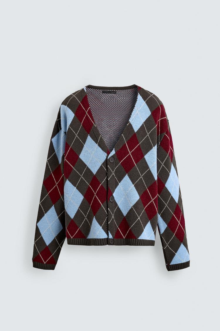 ZARA КАРДИГАН С УЗОРОМ "РОМБЫ", ШОКОЛАДНЫЙ