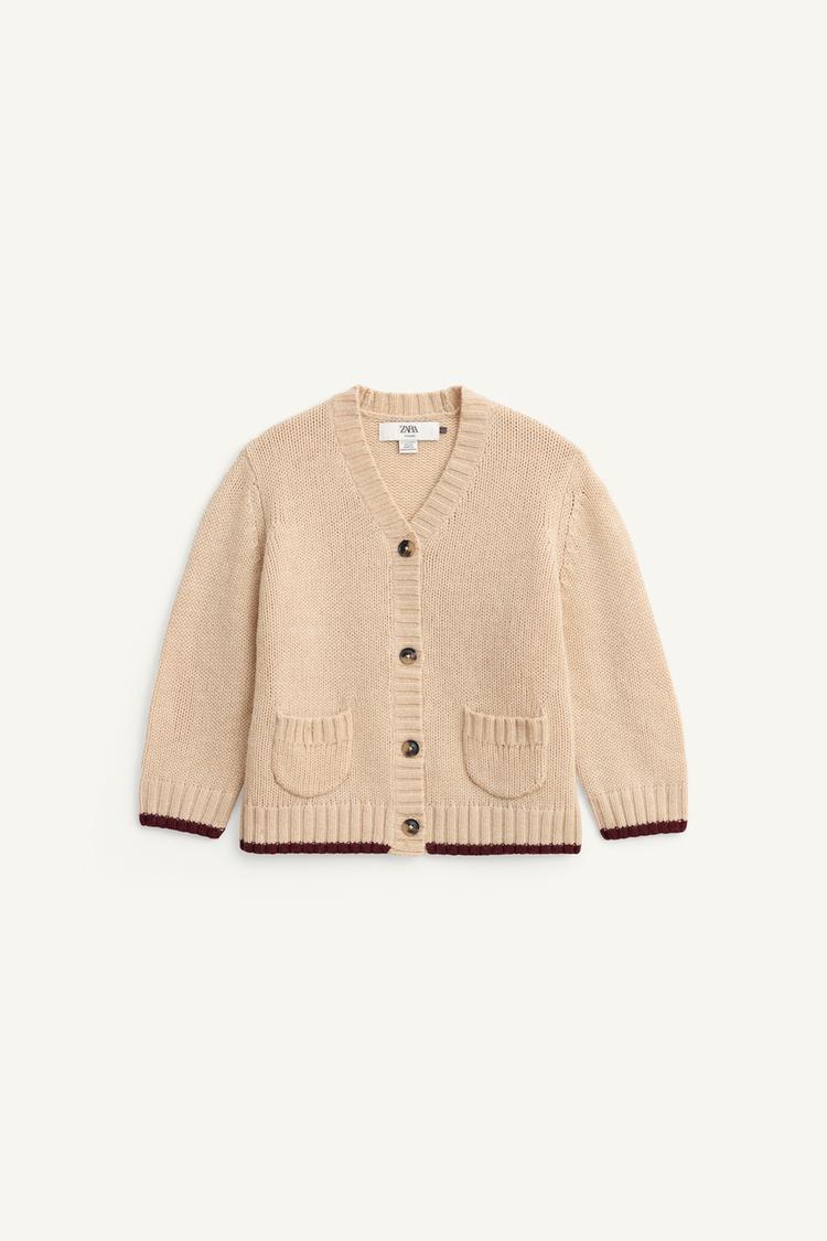 ZARA КАРДИГАН С V - ОБРАЗНЫМ ВЫРЕЗОМ, БЕЖЕВЫЙ