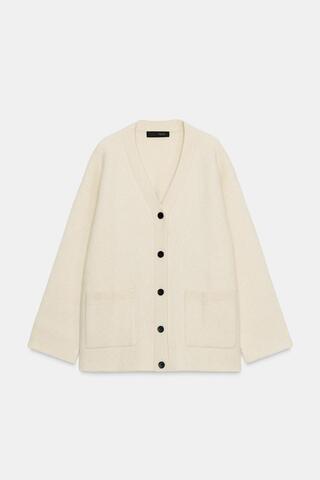 ZARА КАРДИГАН С V-ОБРАЗНЫМ ВЫРЕЗОМ, ЭКРЮ