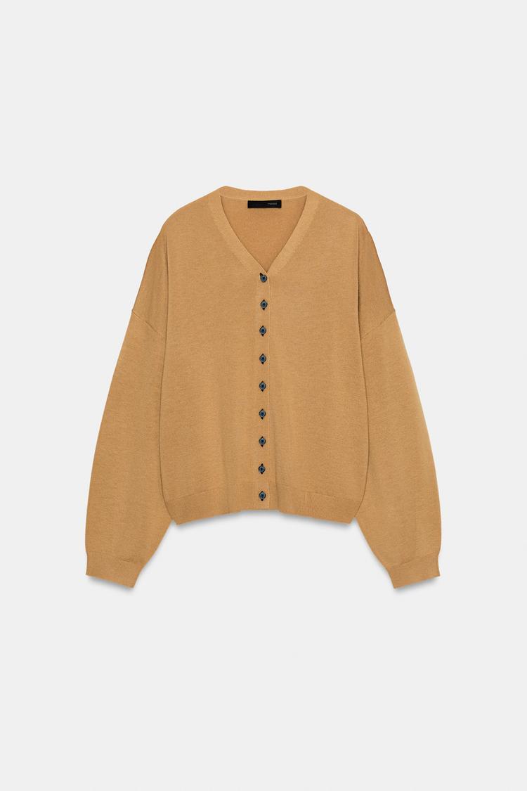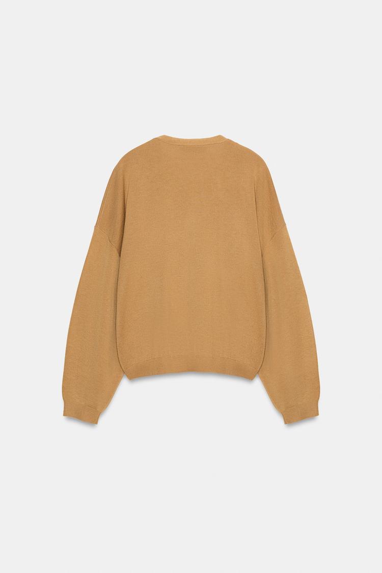 ZARА КАРДИГАН С V-ОБРАЗНЫМ ВЫРЕЗОМ, РЫЖЕВАТО-КОРИЧНЕВЫЙ
