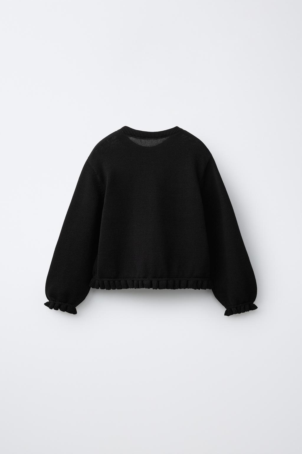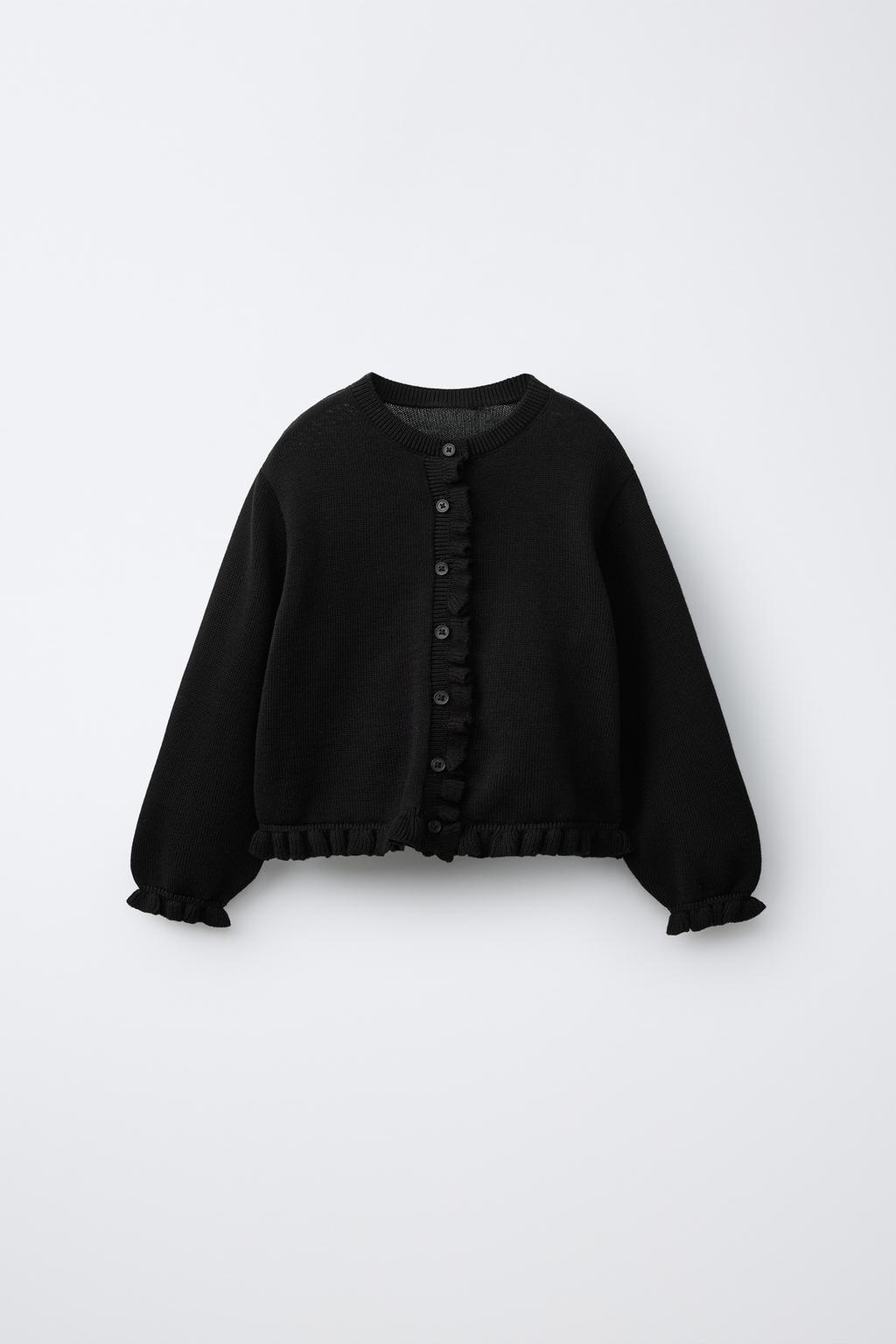 ZARA КАРДИГАН С ВОЛАНАМИ, ЧЕРНЫЙ