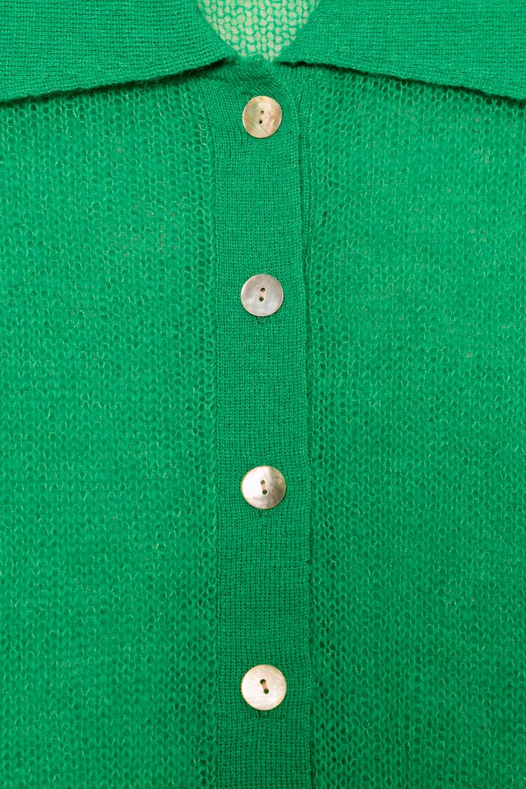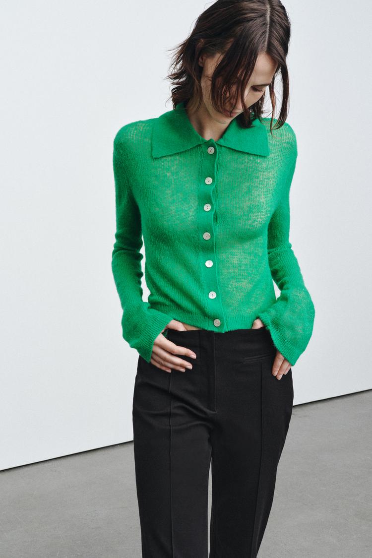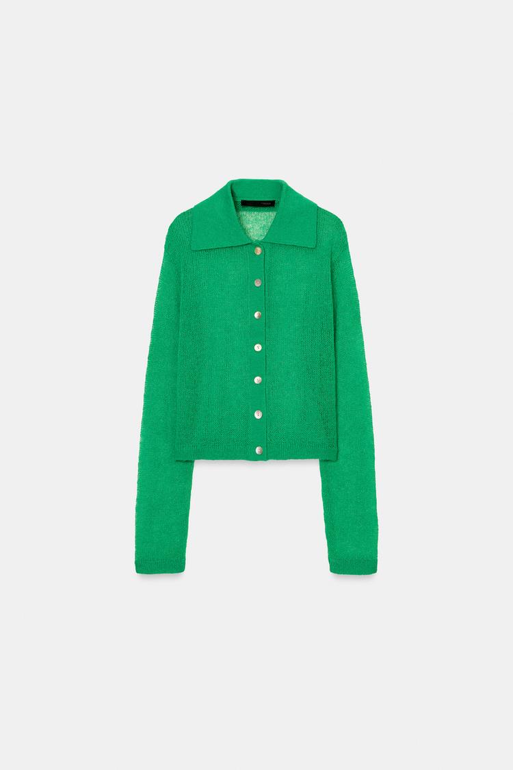ZARA КАРДИГАН С ВОРОТНИКОМ ПОЛО, ЗЕЛЕНЫЙ