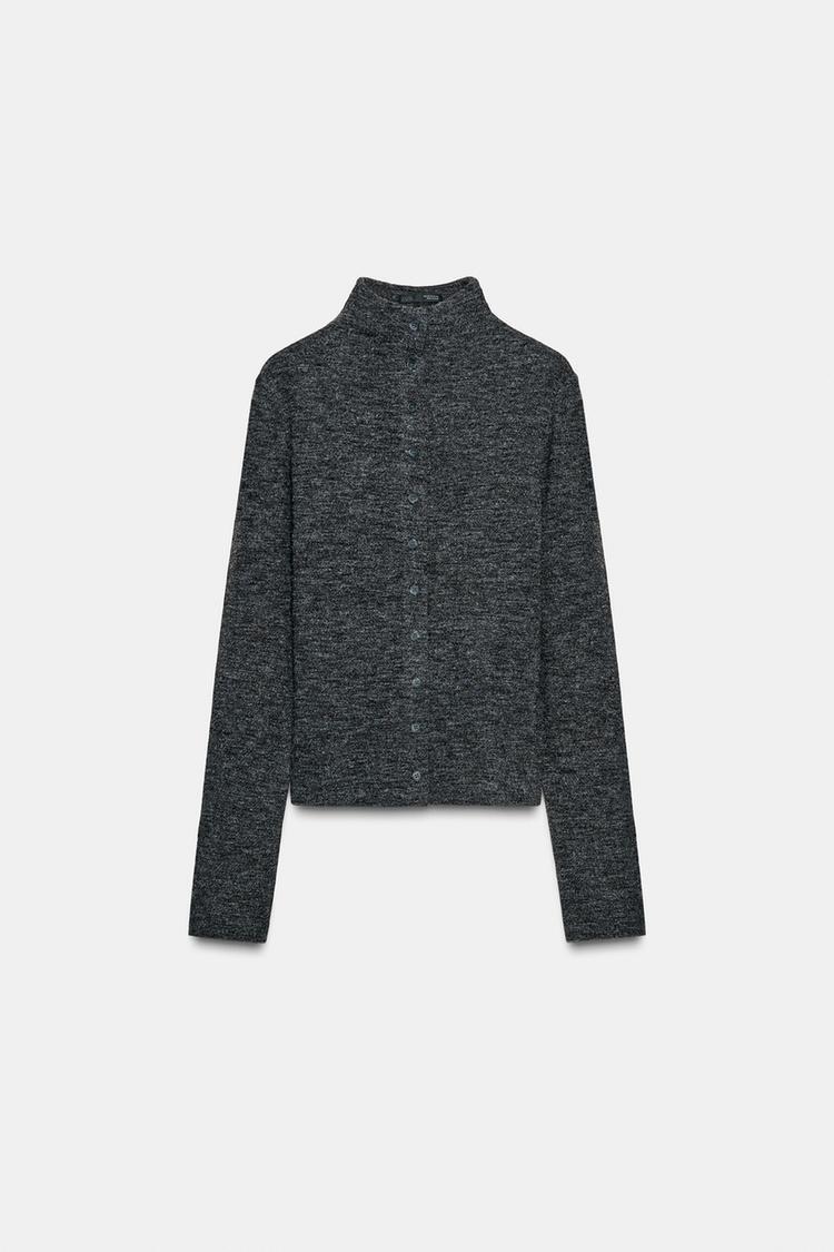ZARА КАРДИГАН С ВОРОТНИКОМ-СТОЙКОЙ, АНТРАЦИТОВО-СЕРЫЙ