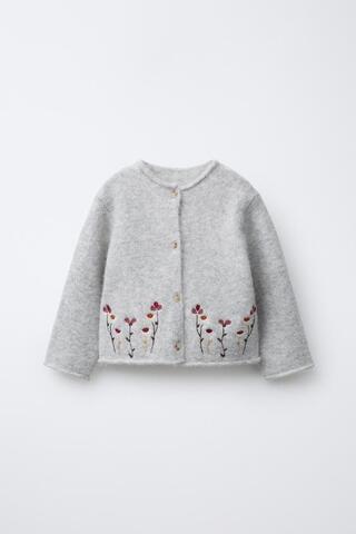 ZARA КАРДИГАН С ВЫШИТЫМИ ЦВЕТАМИ, СЕРЫЙ МЕЛАНЖ