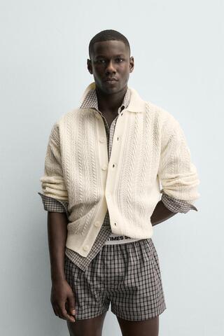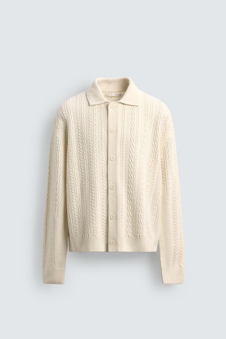 ZARA КАРДИГАН СО СТРУКТУРНЫМ УЗОРОМ «КОСЫ», ЭКРЮ