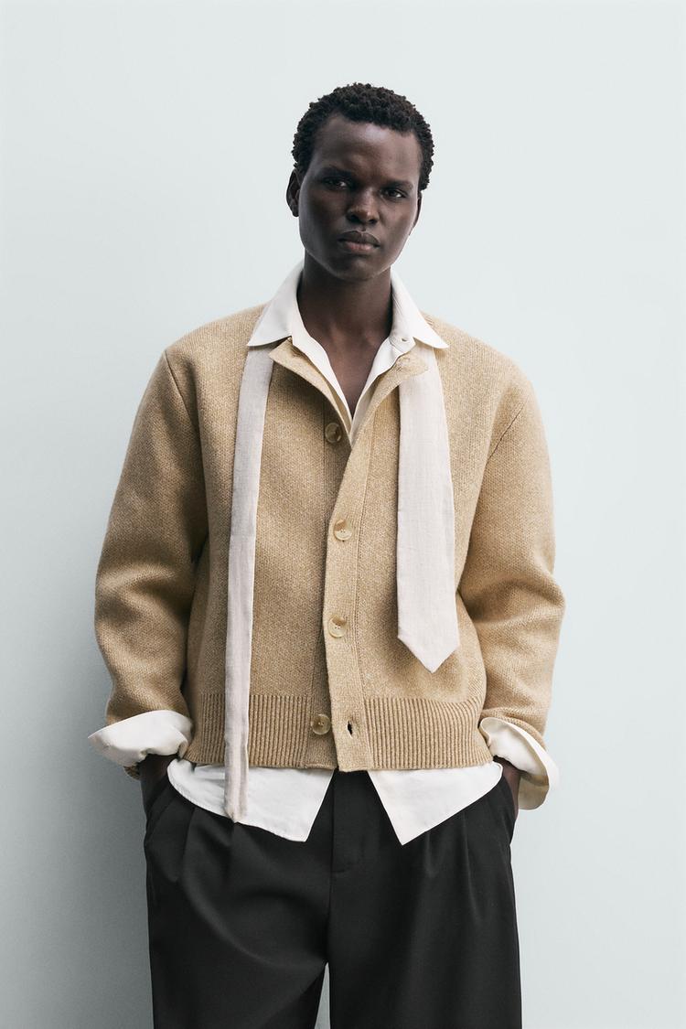 ZARA КАРДИГАН СВОБОДНОГО КРОЯ, БЕЖЕВЫЙ