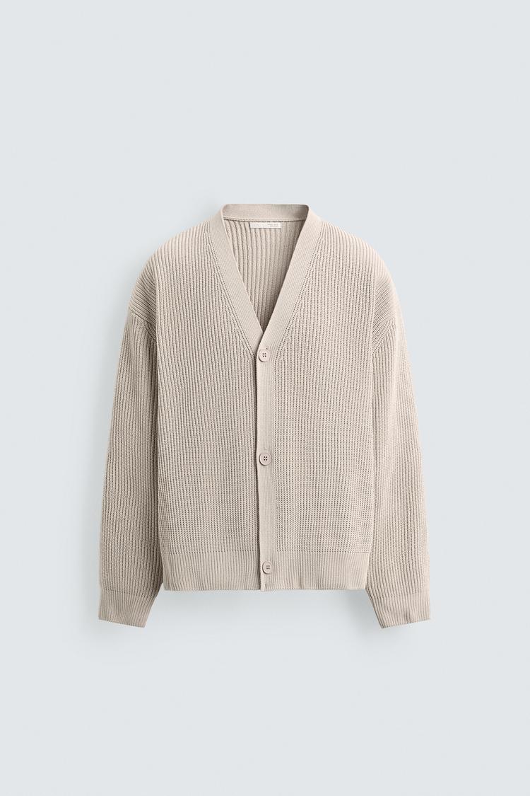 ZARA КАРДИГАН СВОБОДНОГО КРОЯ В РУБЧИК, ЭКРЮ