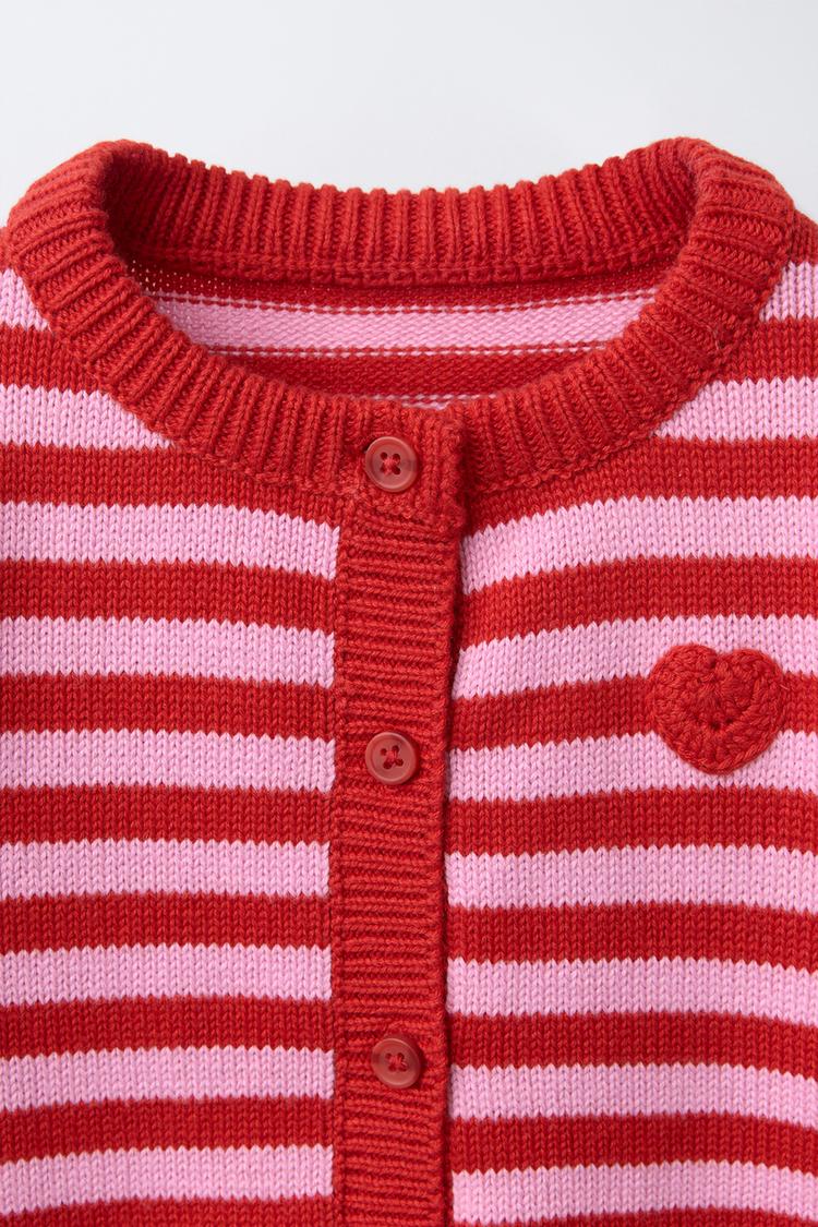 ZARA КАРДИГАН В ПОЛОСКУ С СЕРДЦЕМ, КРАСНЫЙ
