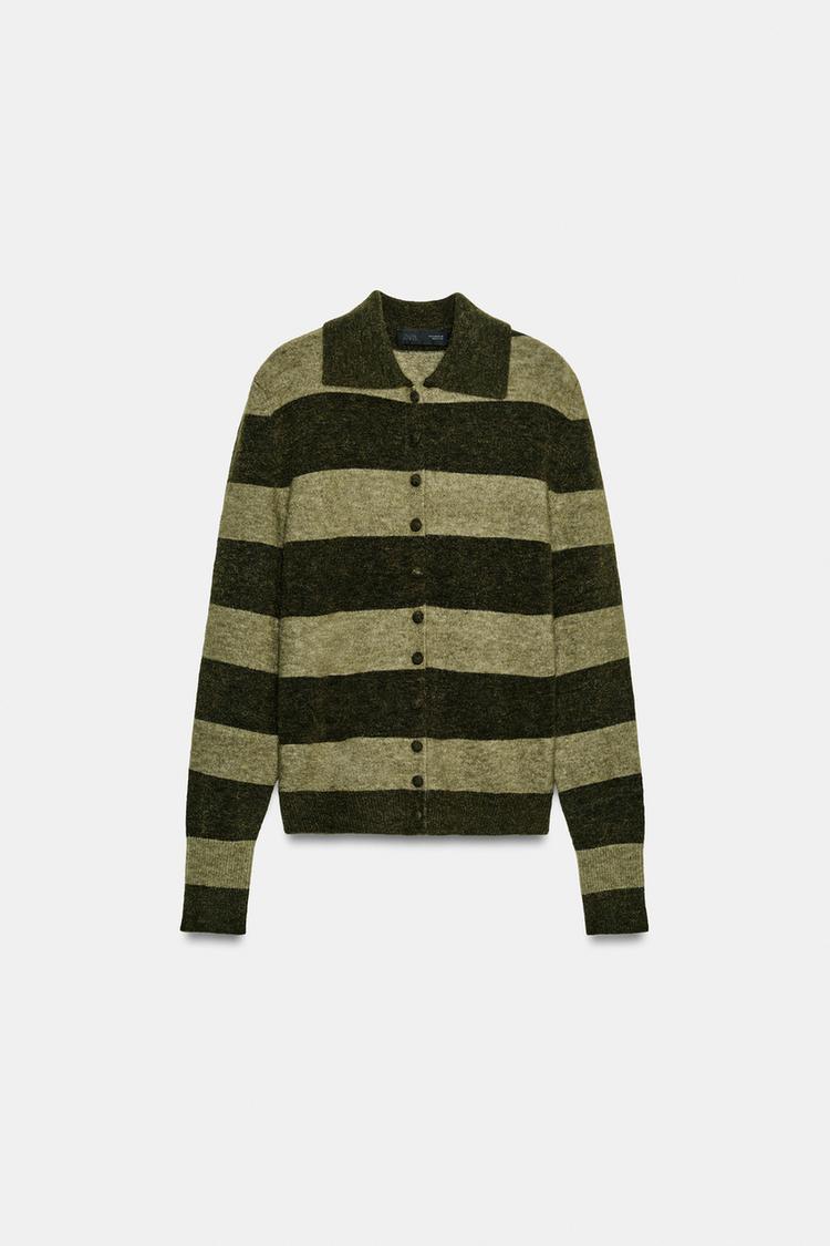 ZARА КАРДИГАН В ПОЛОСКУ, ЗЕЛЕНЫЙ