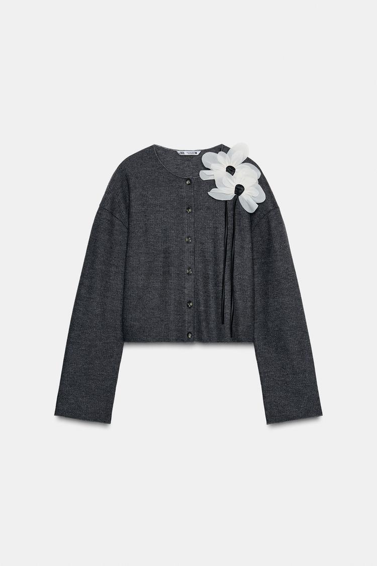ZARА КАРДИГАН В РУБЧИК С ЦВЕТАМИ, СЕРЫЙ