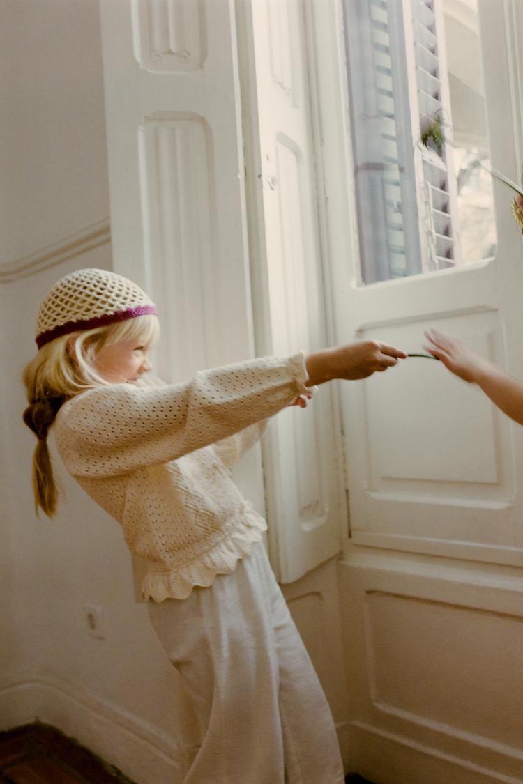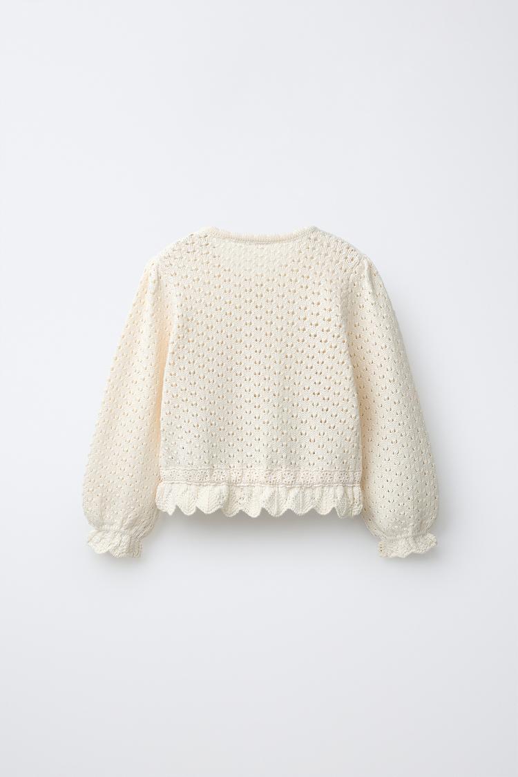 ZARA КАРДИГАН ВЯЗАНЫЙ С КРУЖЕВОМ, ЭКРЮ