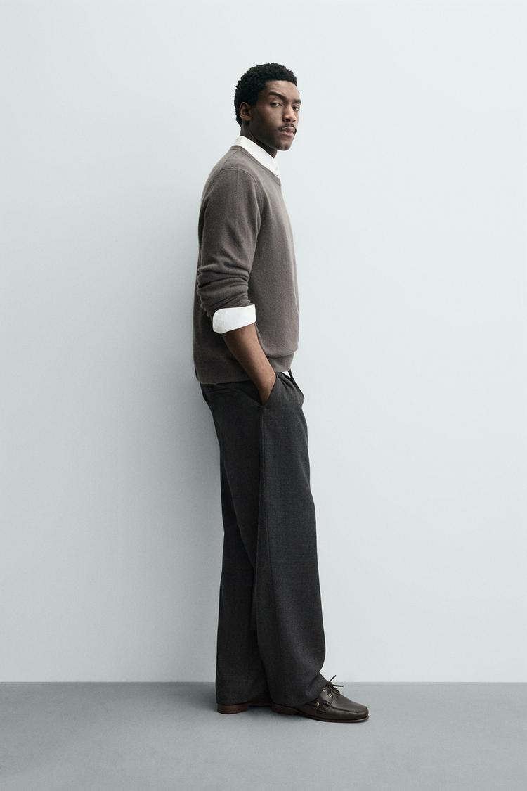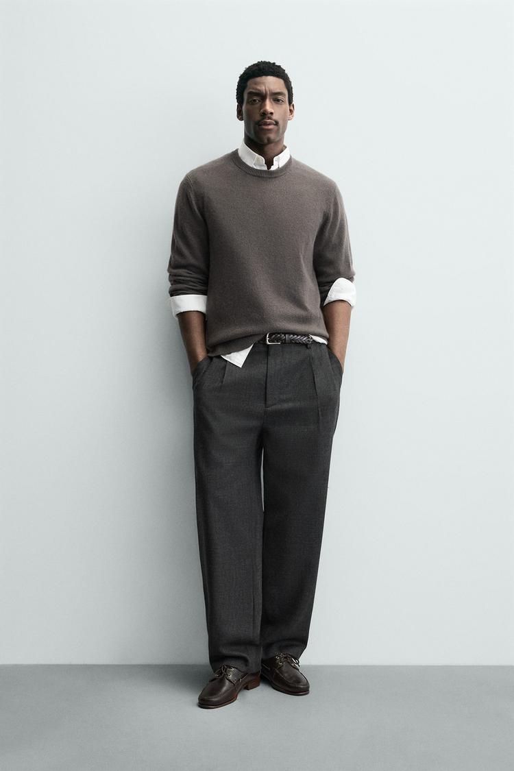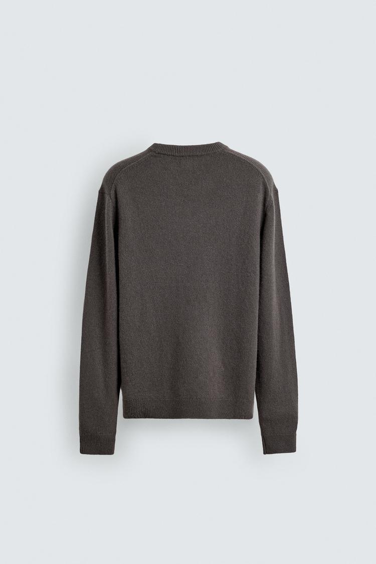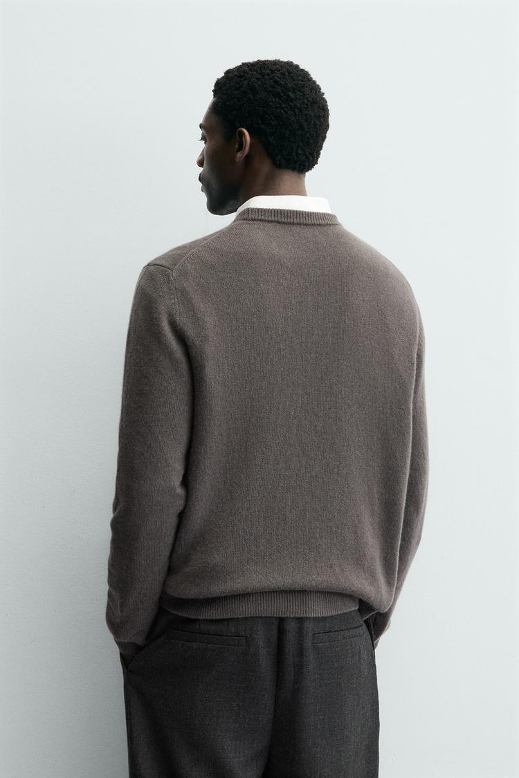 ZARA КАШЕМИРОВЫЙ СВИТЕР КЛАССИЧЕСКОГО КРОЯ, СЕРО-КОРИЧНЕВЫЙ