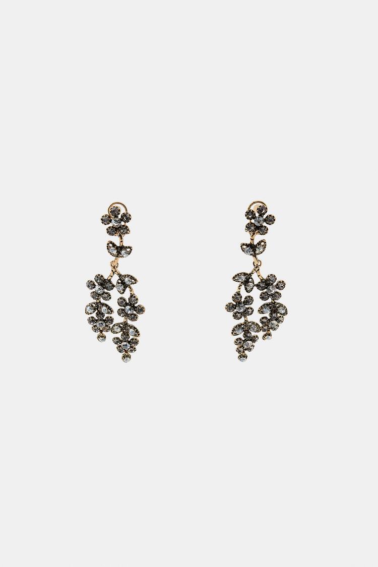 ZARA КАСКАДНЫЕ СЕРЬГИ С ЦВЕТАМИ И СТРАЗАМИ, ЗОЛОТИСТЫЙ