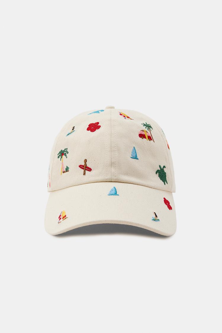 ZARA КЕПКА ИЗ 100% ХЛОПКА С КОНТРАСТНОЙ ВЫШИВКОЙ, ЭКРЮ