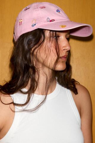 ZARA КЕПКА ИЗ 100% ХЛОПКА С КОНТРАСТНОЙ ВЫШИВКОЙ, РОЗОВЫЙ