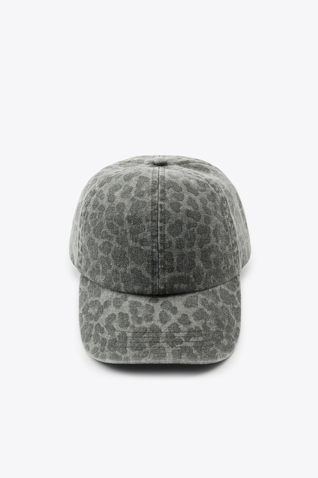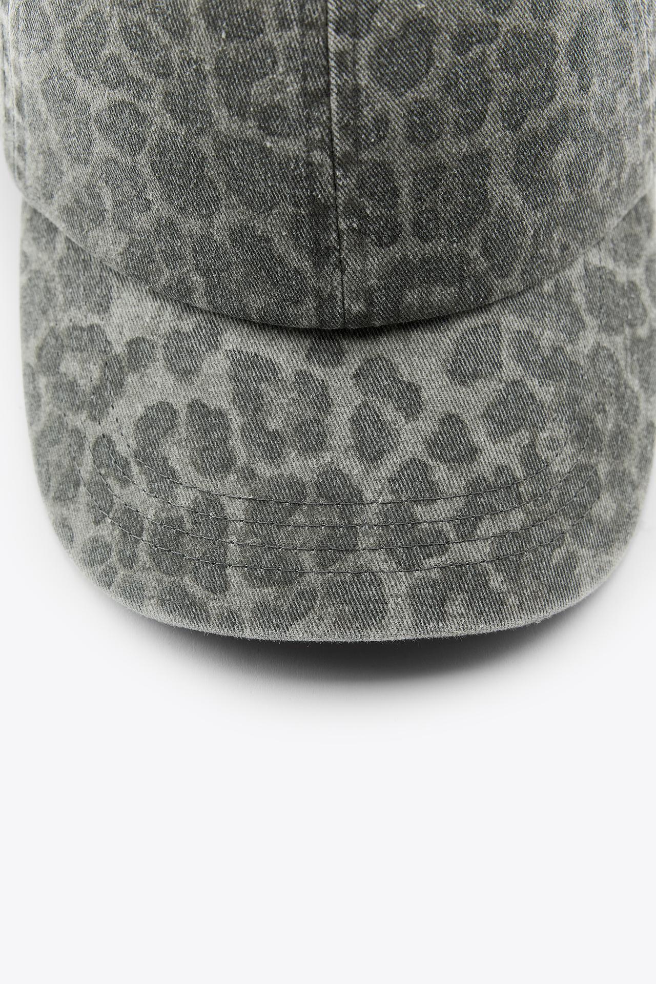 ZARA КЕПКА ИЗ САРЖИ С АНИМАЛИСТИЧЕСКИМ ПРИНТОМ, СВЕТЛО-СЕРЫЙ