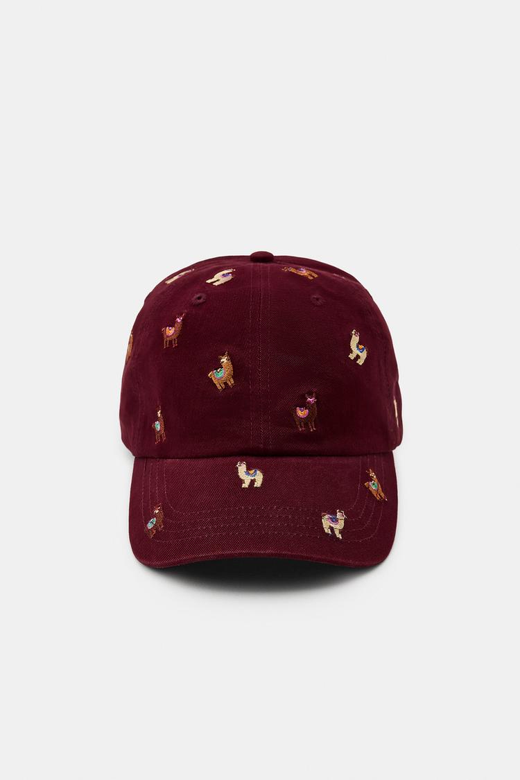 ZARA КЕПКА ИЗ САРЖИ С ВЫШИВКОЙ, БУРГУНДИ