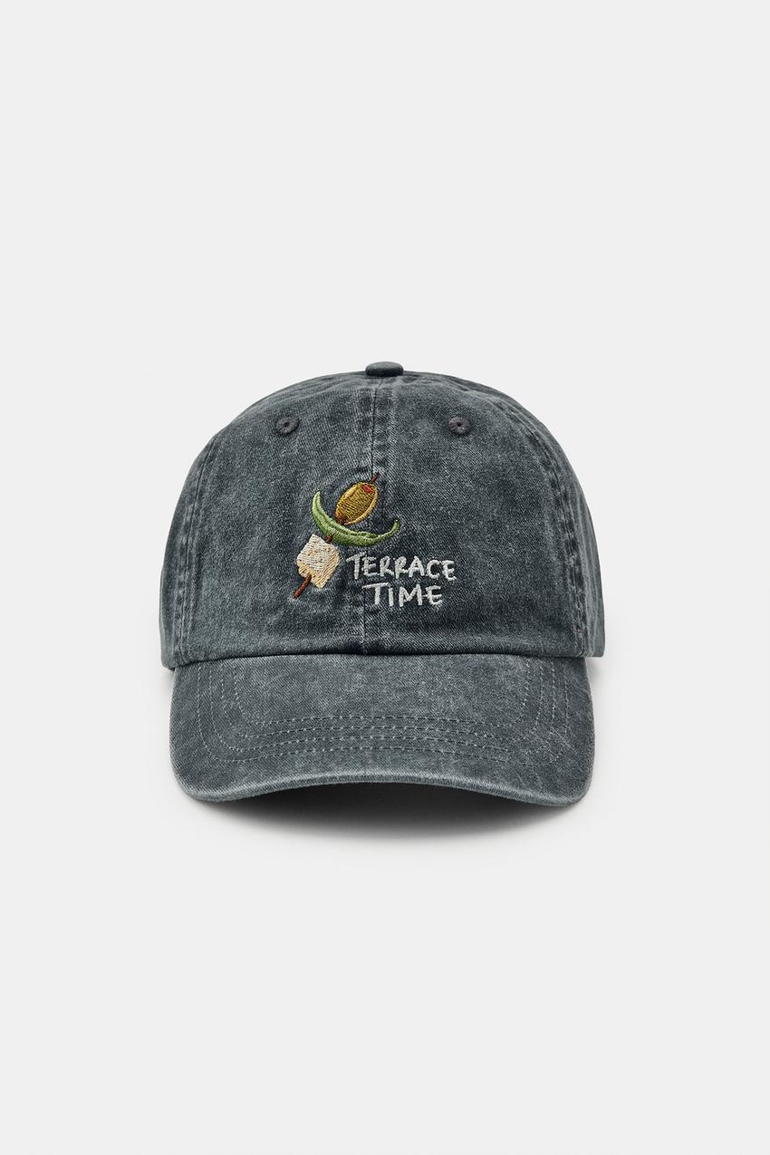ZARA КЕПКА ИЗ САРЖИ С ВЫШИВКОЙ GILDA, СЕРЫЙ