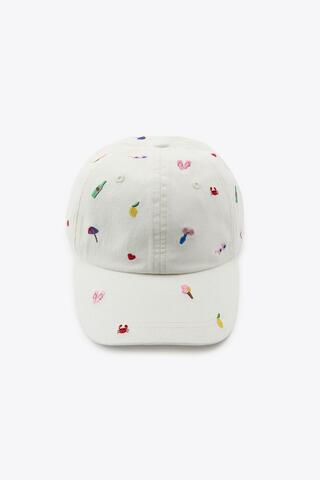 ZARA КЕПКА ИЗ ТВИЛА С ВЫШИВКОЙ, ЭКРЮ