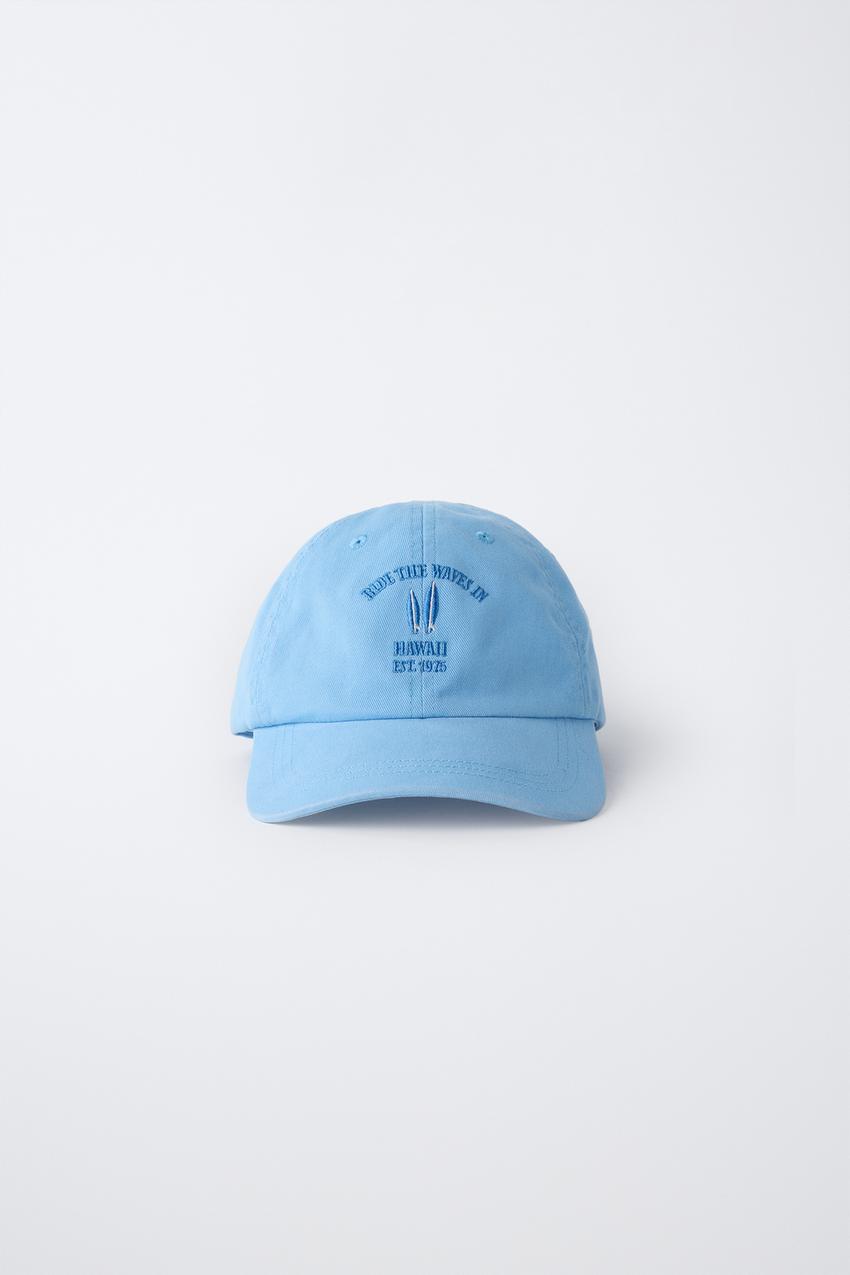 ZARA КЕПКА С ЭФФЕКТОМ ПОТЕРТОСТИ И ВЫШИВКОЙ, СИНИЙ