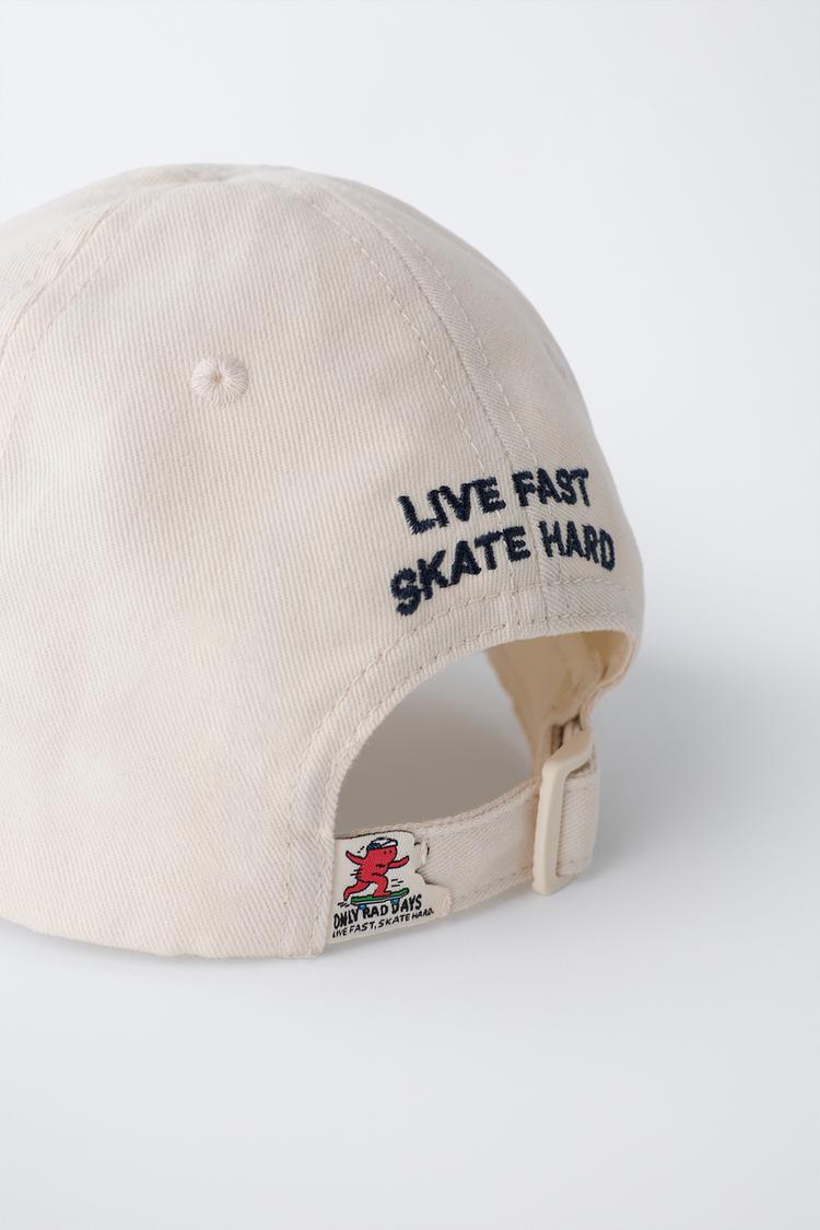 ZARA КЕПКА С ВЫШИТЫМ ЛОГОТИПОМ, ЭКРЮ/СИНИЙ