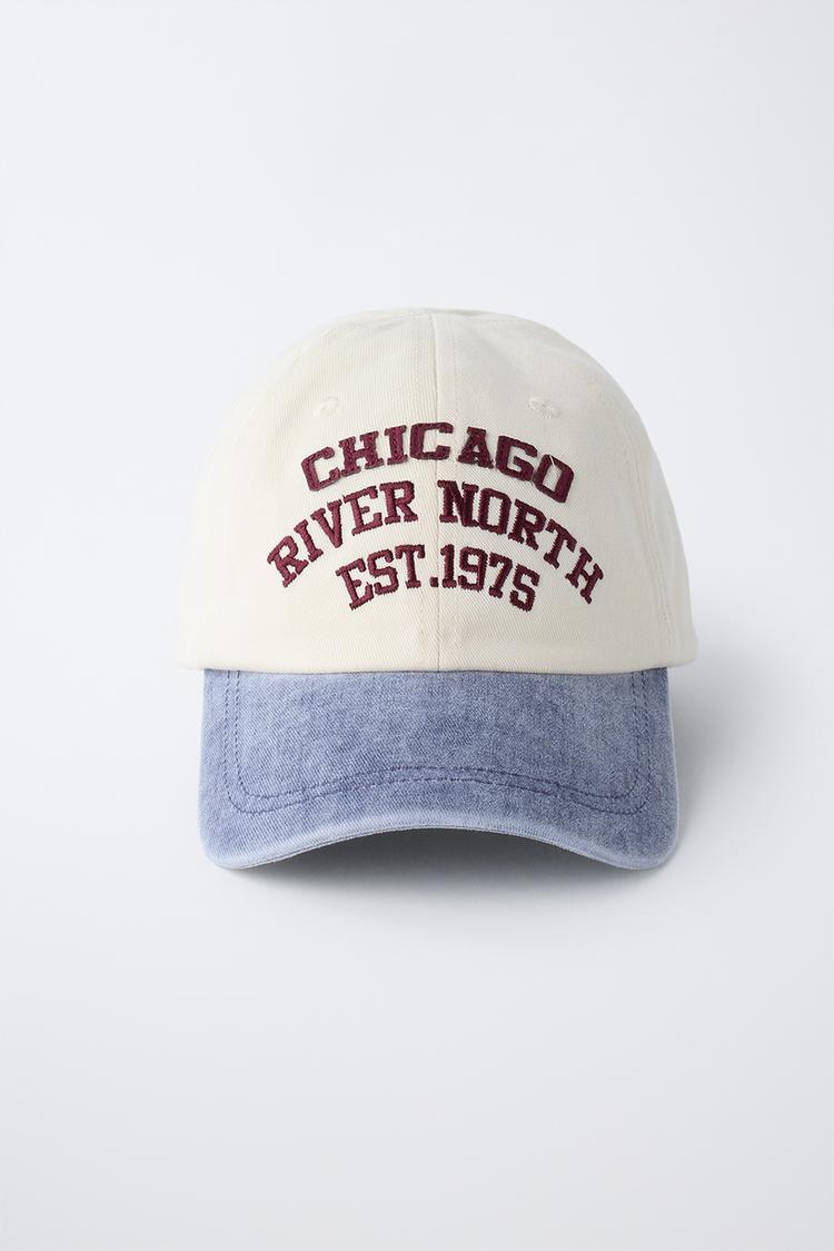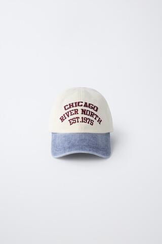 ZARA КЕПКА VARSITY С ВЫШИКОЙ, ЭКРЮ/ТЕМНО-СИНИЙ