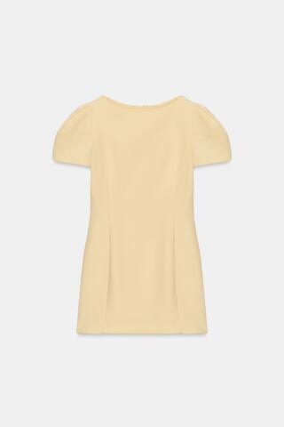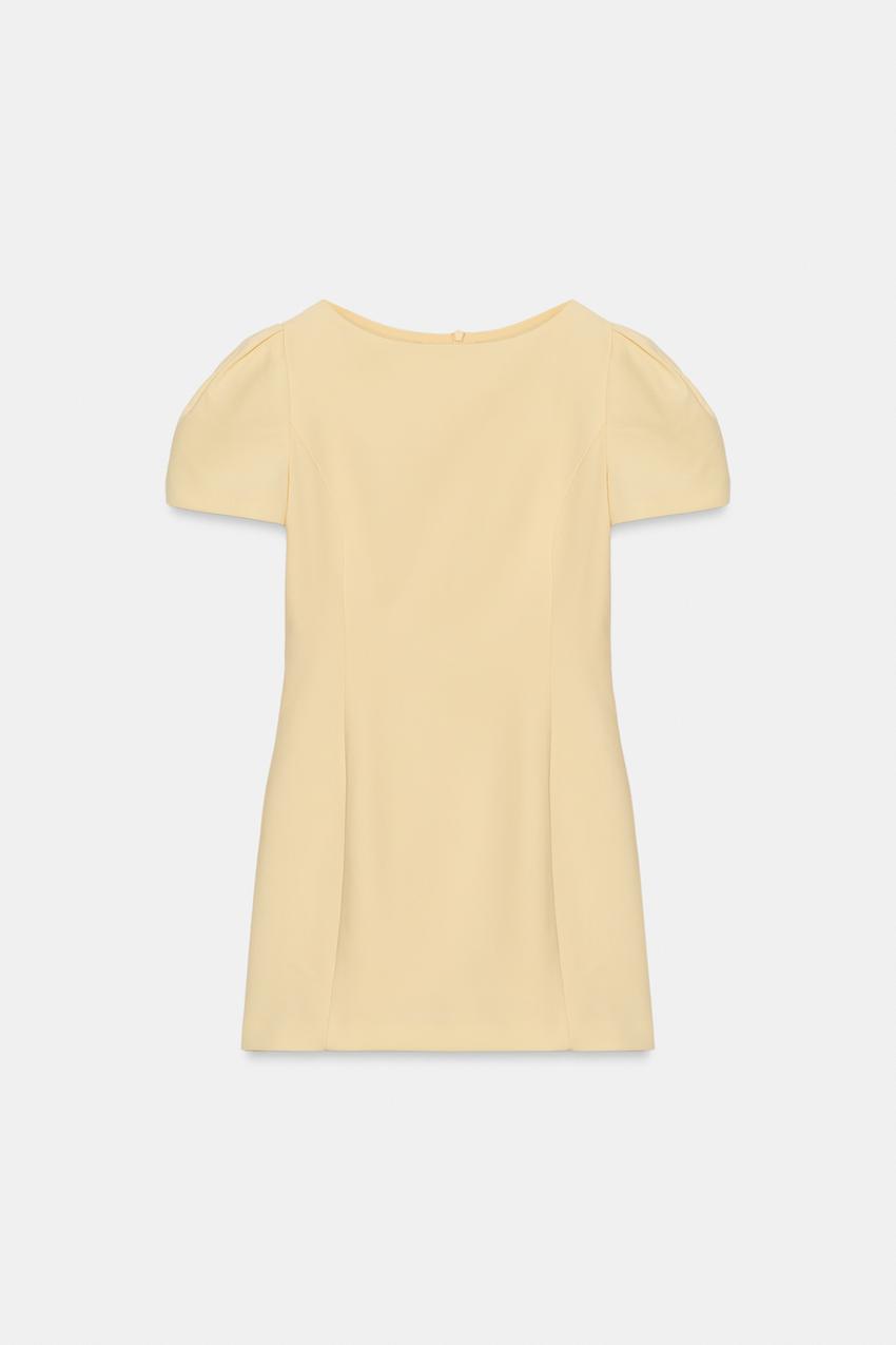ZARA КОРОТКОЕ ПЛАТЬЕ СО СКЛАДКАМИ И КАРМАНАМИ, ПАСТЕЛЬНО-ЖЕЛТЫЙ