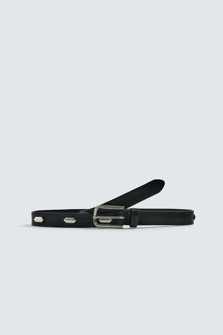 ZARA ККОЖАНЫЙ РЕМЕНЬ С ЗАКЛЕПКАМИ - LIMITED EDITION, ЧЕРНЫЙ