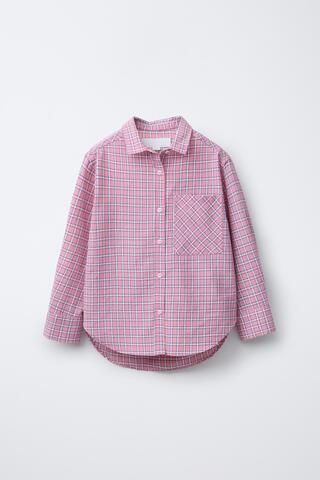 ZARA КЛЕТЧАТАЯ РУБАШКА ОВЕРСАЙЗ, РОЗОВЫЙ