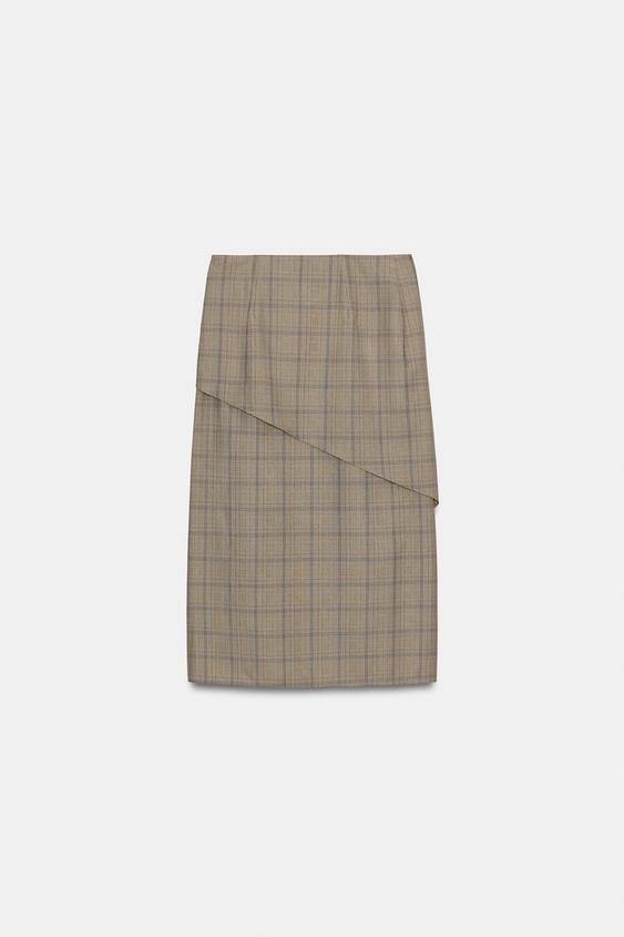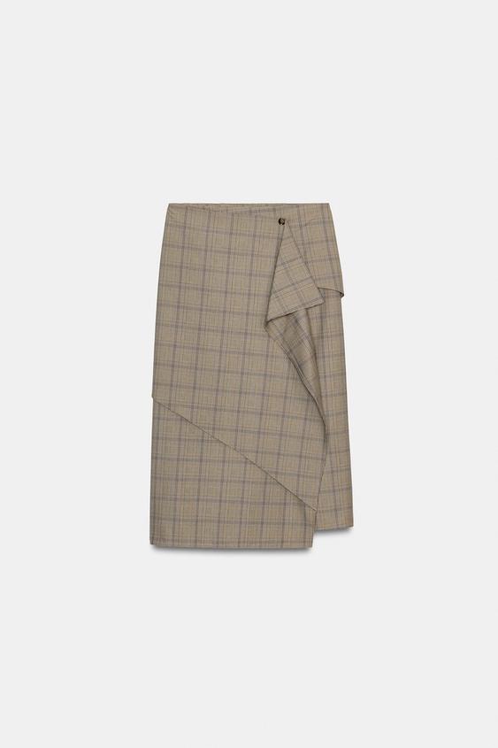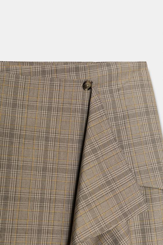 ZARA КЛЕТЧАТАЯ ЮБКА С ВОЛАНАМИ — ZW COLLECTION, РАЗНОЦВЕТНЫЙ