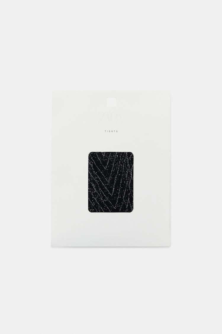 ZARA КОЛГОТКИ С БЛЕСТЯЩЕЙ НИТЬЮ, ЧЕРНЫЙ