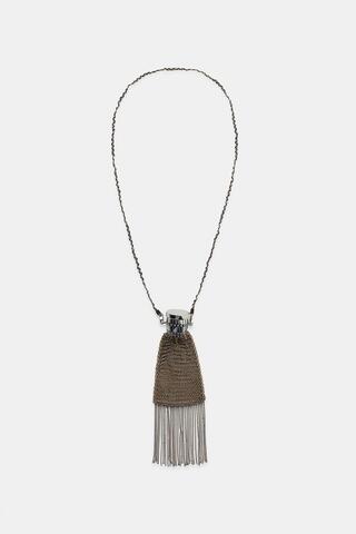 ZARA КОЛЬЕ С СУМКОЙ И БАХРОМОЙ, ЦВЕТ СОСТАРЕННОГО ЗОЛОТА