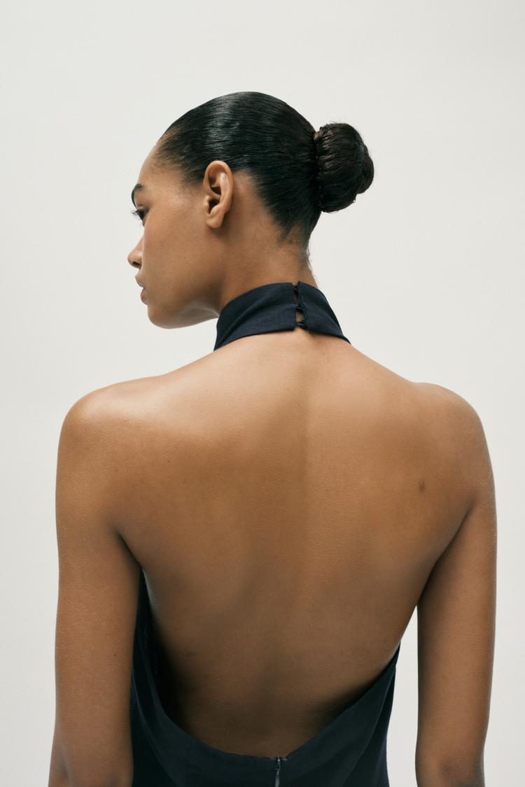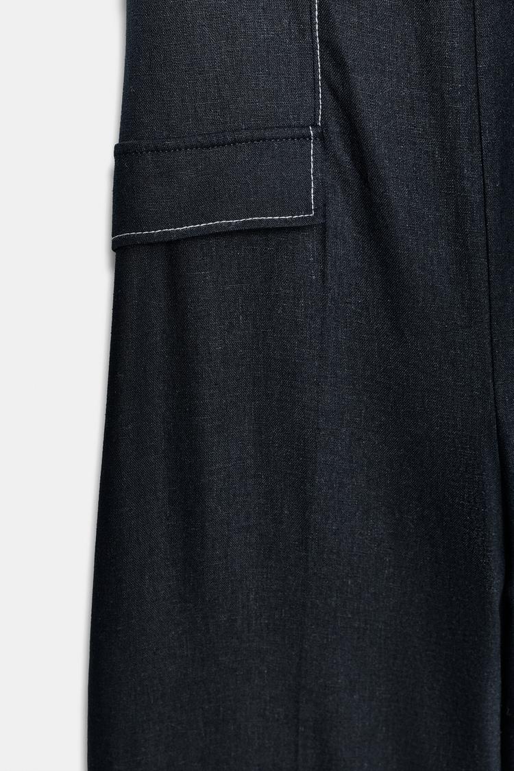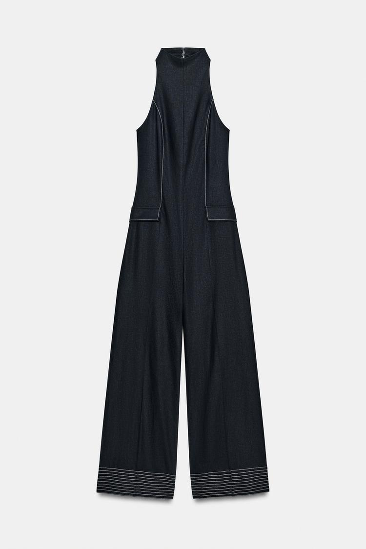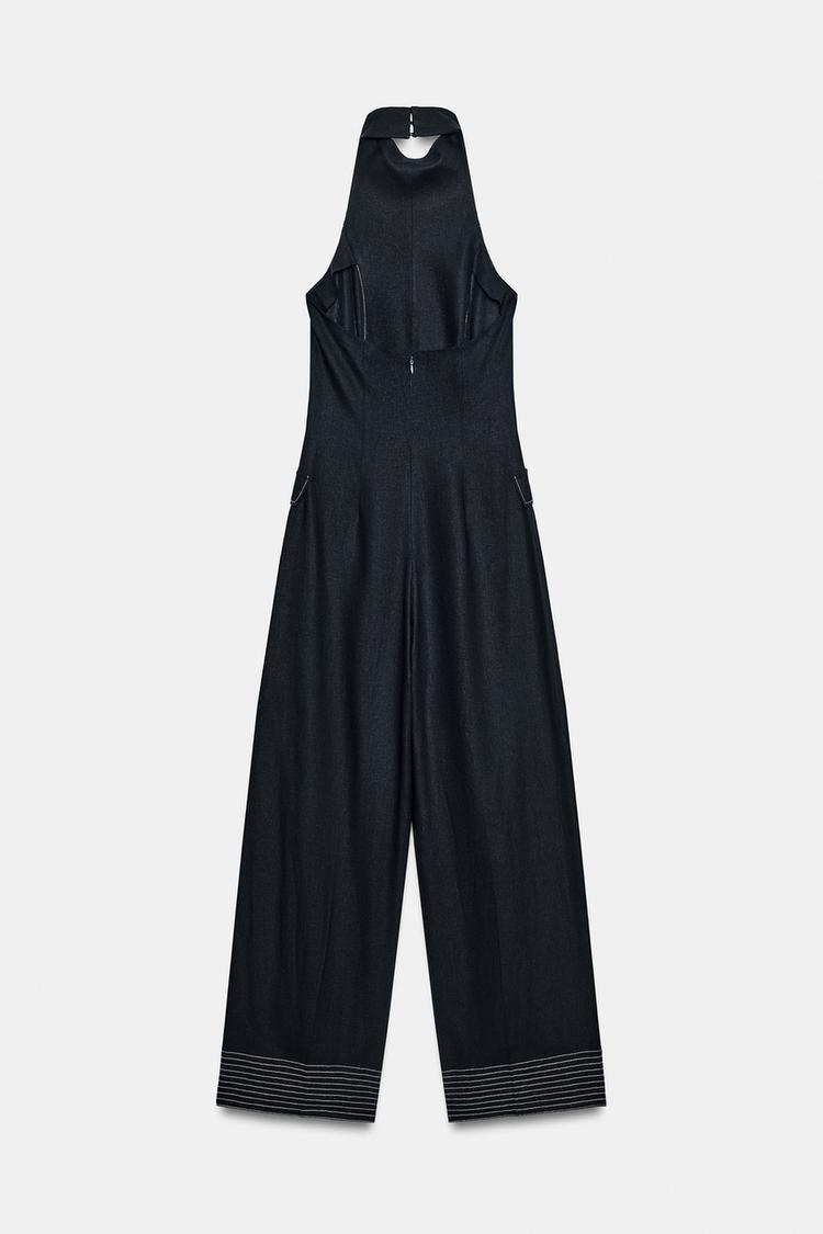 ZARA КОМБИНЕЗОН ХАЛТЕР С КОНТРАСТНОЙ СТРОЧКОЙ И ЛЬНОМ, МОРСКОЙ СИНИЙ