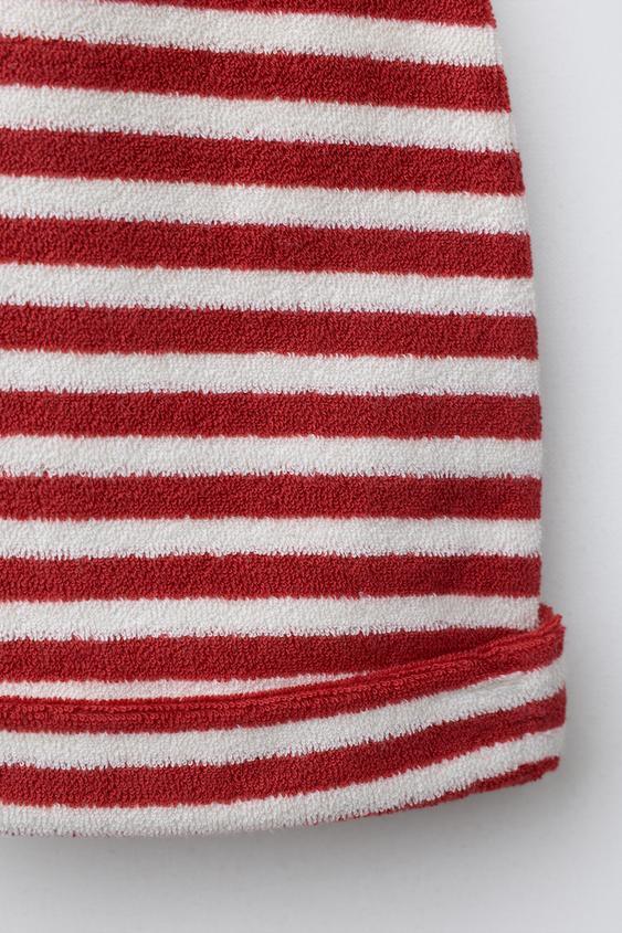 ZARA КОМБИНЕЗОН И ШАПОЧКА С ПОМПОНОМ И ПОЛОСКАМИ, ТЕМНО-РОЗОВЫЙ