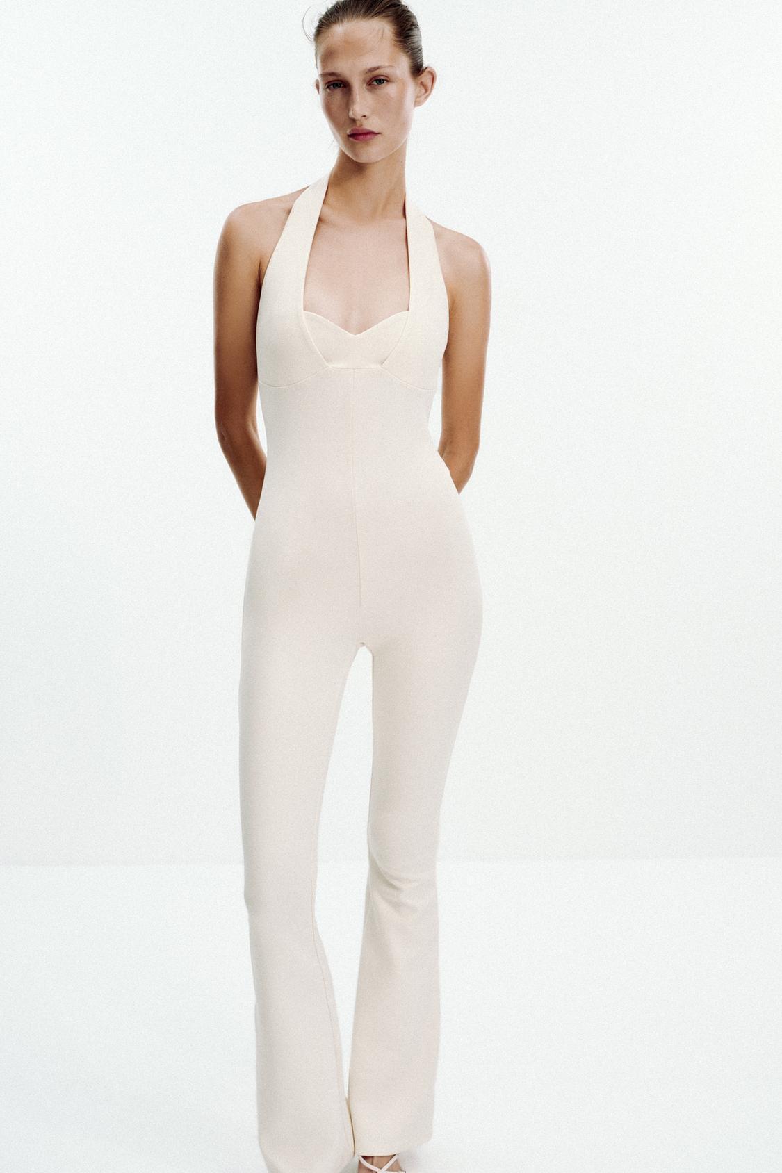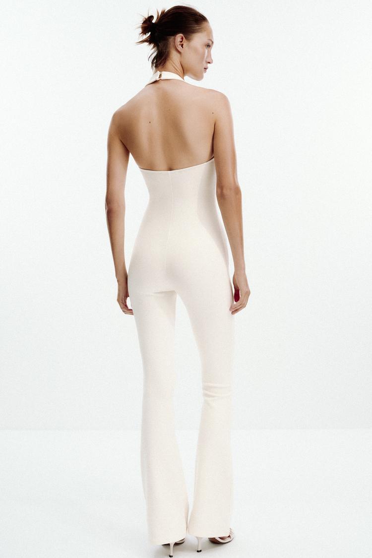 ZARA КОМБИНЕЗОН INTERLOCK FLARE, ЭКРЮ