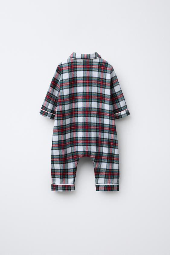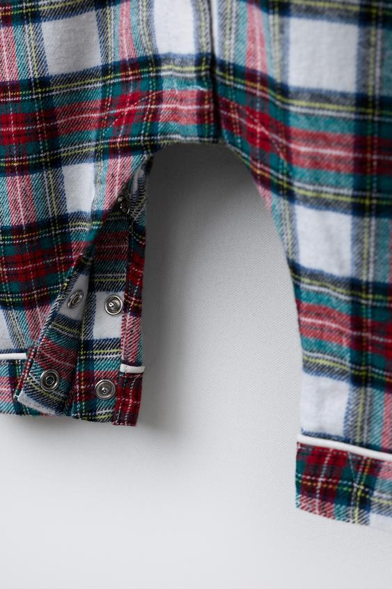 ZARA КОМБИНЕЗОН ИЗ ФЛАНЕЛИ В КЛЕТКУ, ЭКРЮ