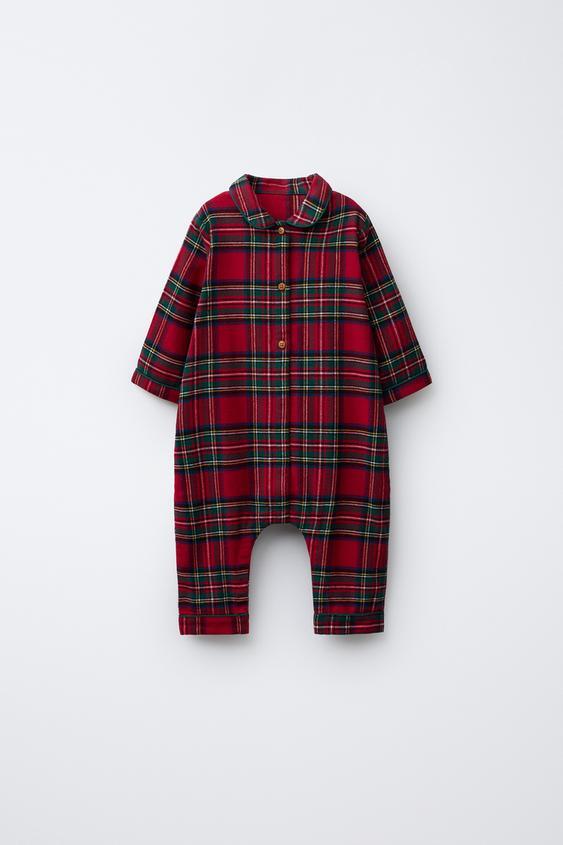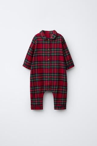 ZARA КОМБИНЕЗОН ИЗ ФЛАНЕЛИ В КЛЕТКУ, КРАСНЫЙ