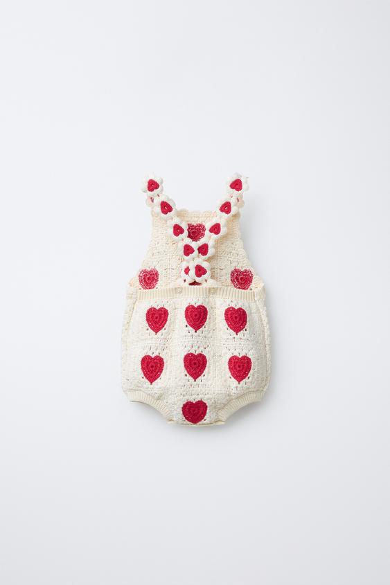 ZARA КОМБИНЕЗОН ИЗ КРУЖЕВА КРОШЕ С СЕРДЦАМИ, ЭКРЮ