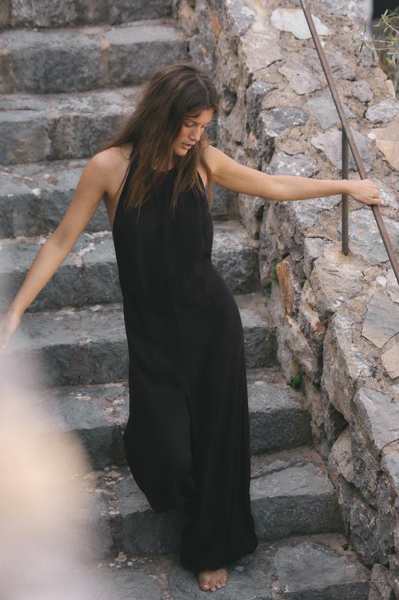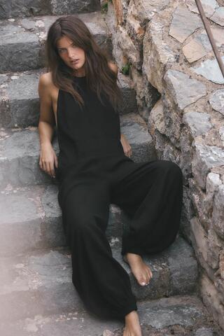 ZARA КОМБИНЕЗОН ИЗ ЛИОЦЕЛЛА, ЧЕРНЫЙ
