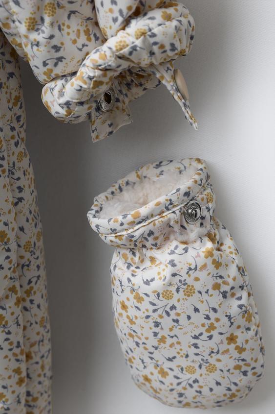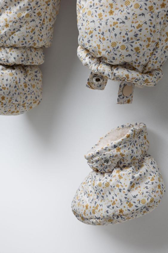 ZARA КОМБИНЕЗОН ИЗ НЕЙЛОНА В ЦВЕТОЧЕК СО СЪЕМНЫМИ ВАРЕЖКАМИ И ПИНЕТКАМИ, РАЗНОЦВЕТНЫЙ