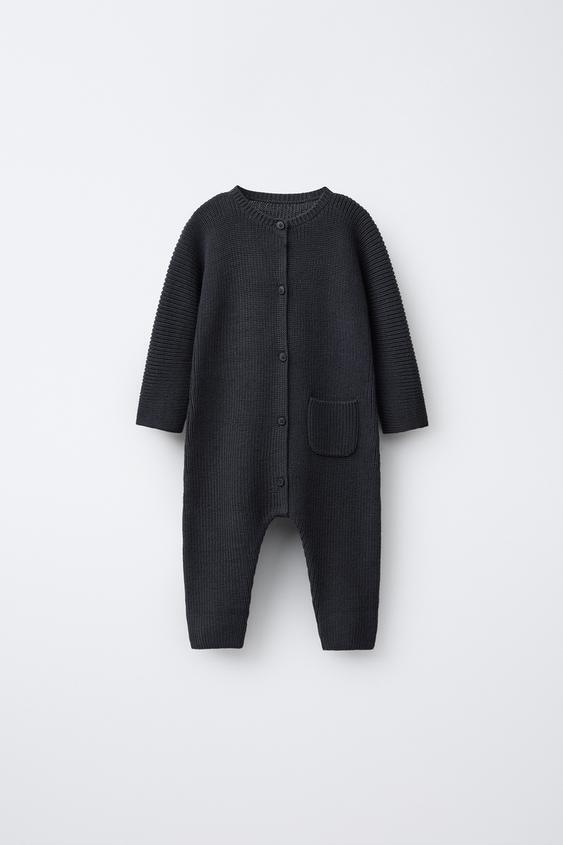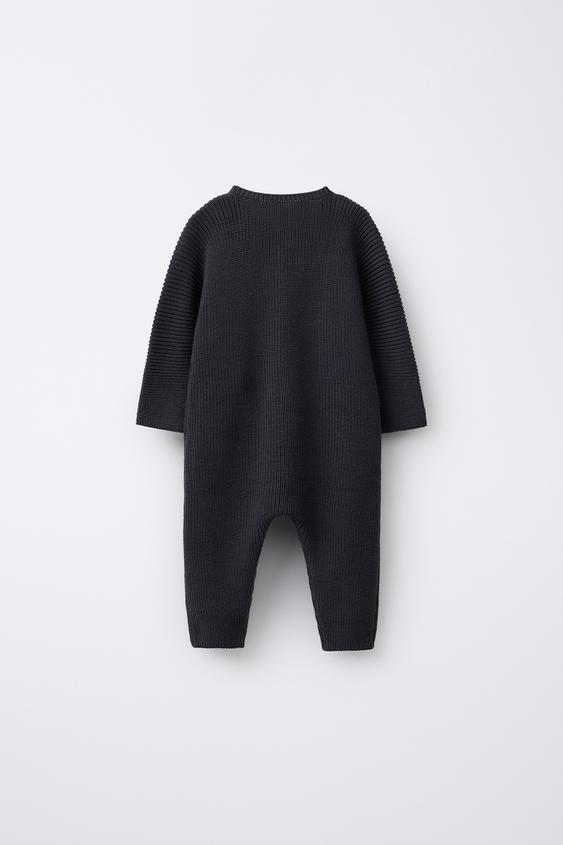 ZARA КОМБИНЕЗОН ИЗ ТРИКОТАЖА С ЖЕМЧУЖИНАМИ, СТАЛЬНОЙ