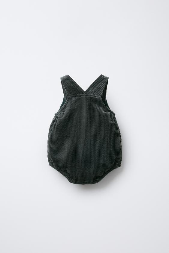 Вельветовый комбинезон с квадратным вырезом и бретелями, застегивающимися на пуговицы спереди. Застегивается на кнопки внизу. Нагрудный накладной карман. Внутренняя подкладка.