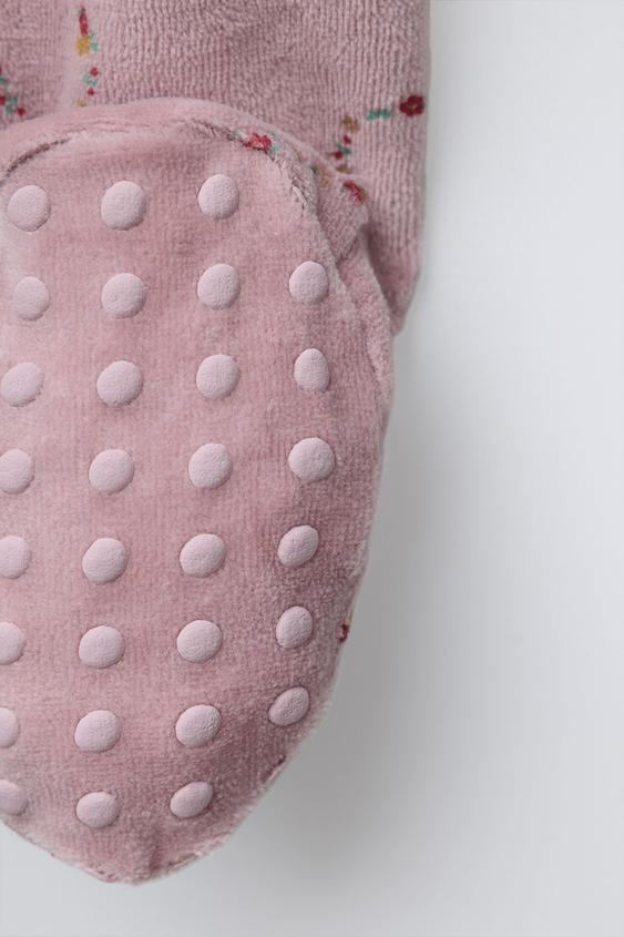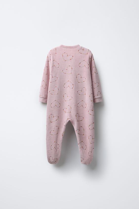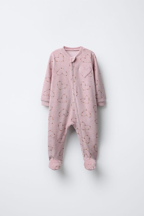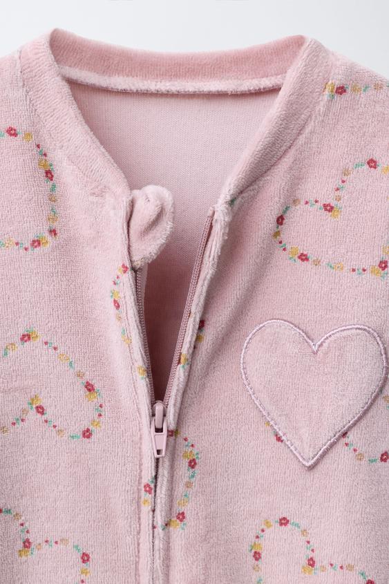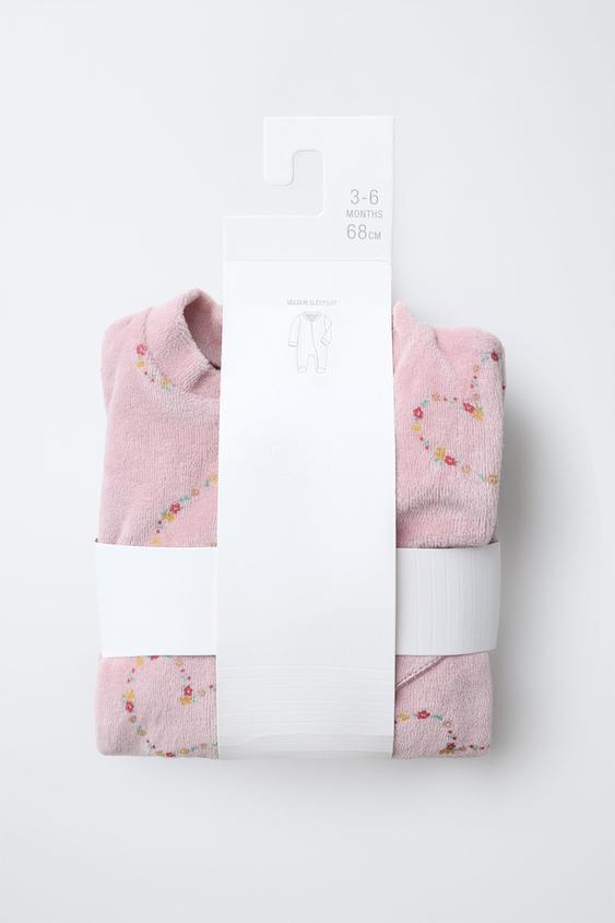ZARA КОМБИНЕЗОН ИЗ ВЕЛЮРА С ПРИНТОМ «СЕРДЦА И ЦВЕТЫ», ПУДРОВО-РОЗОВЫЙ