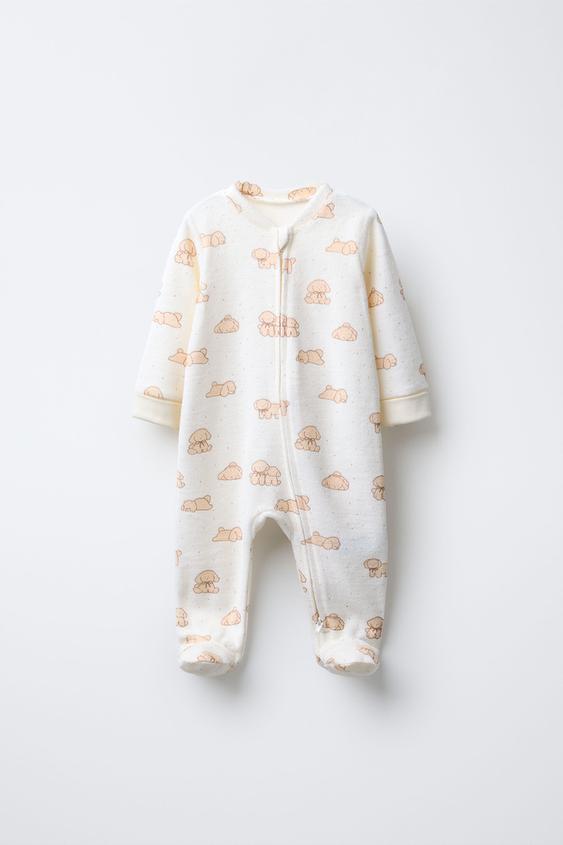 Комбинезон с круглым вырезом и регулируемыми длинными рукавами. Застежка-молния спереди. Принт «Собачки». Состав ткани: 75% хлопка.