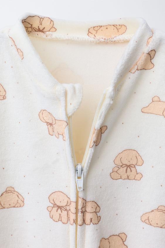 ZARA КОМБИНЕЗОН ИЗ ВЕЛЮРА С ПРИНТОМ «СОБАЧКИ», РЫЖЕВАТО-КОРИЧНЕВЫЙ