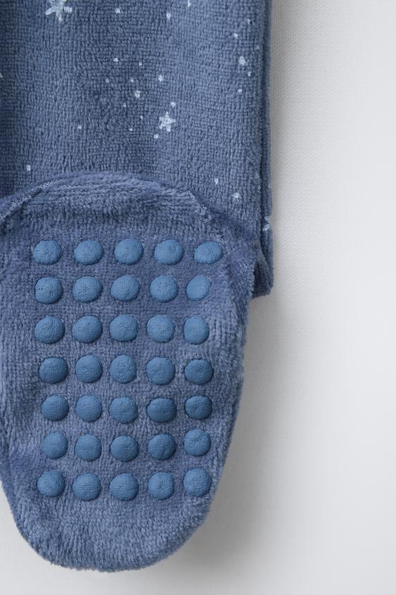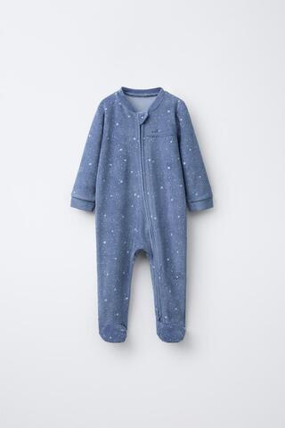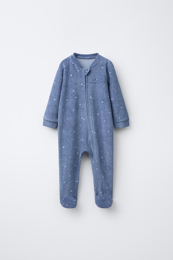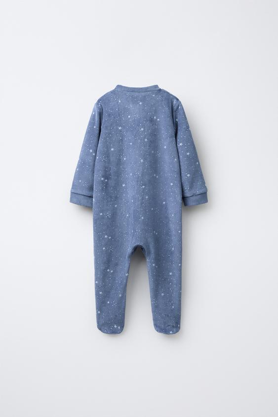 ZARA КОМБИНЕЗОН ИЗ ВЕЛЮРА С ПРИНТОМ «ЗВЕЗДЫ», СИНИЙ